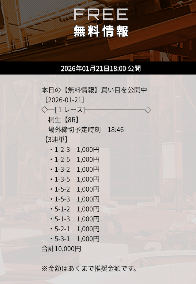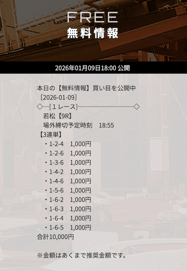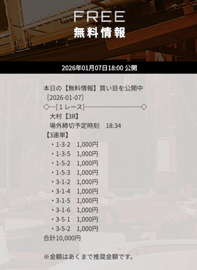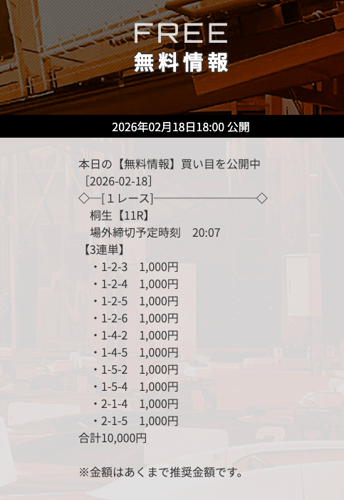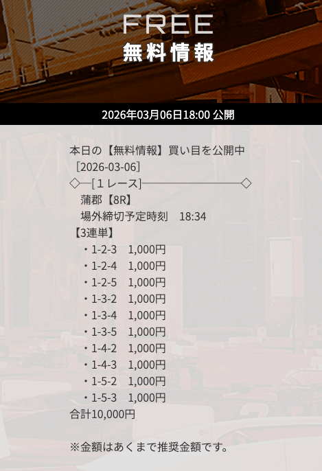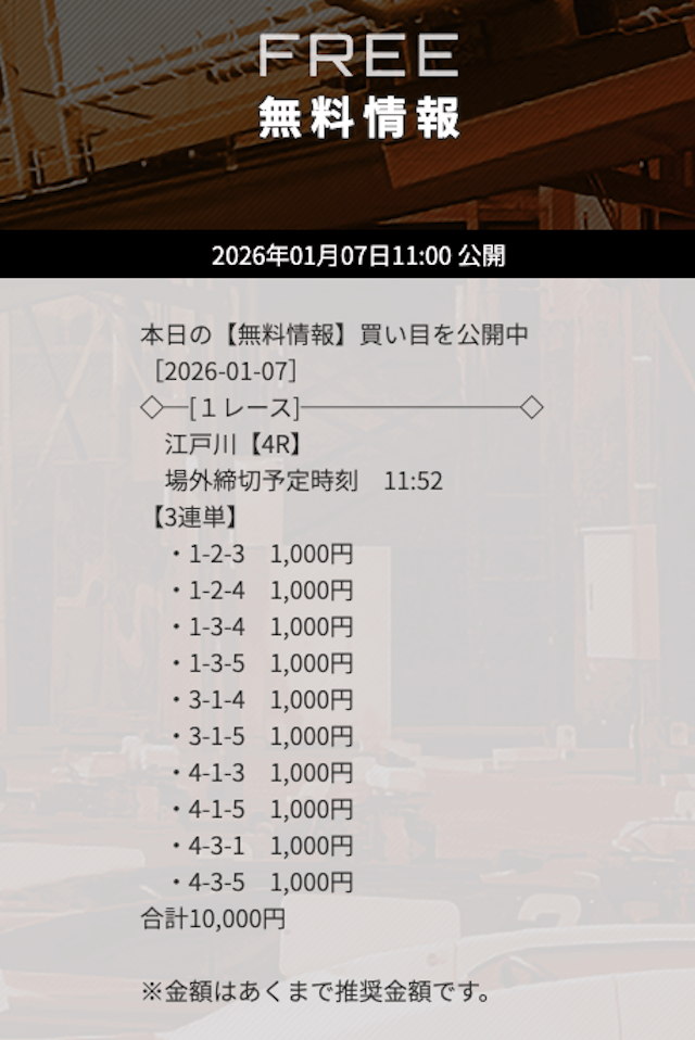情報料金は18,000円と非常に安価なため、これぞローリスク・ハイリターン!