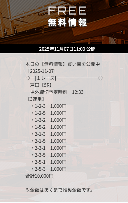 | 12/7 | 戸田3R | 的中 | 37,050円 |  |
