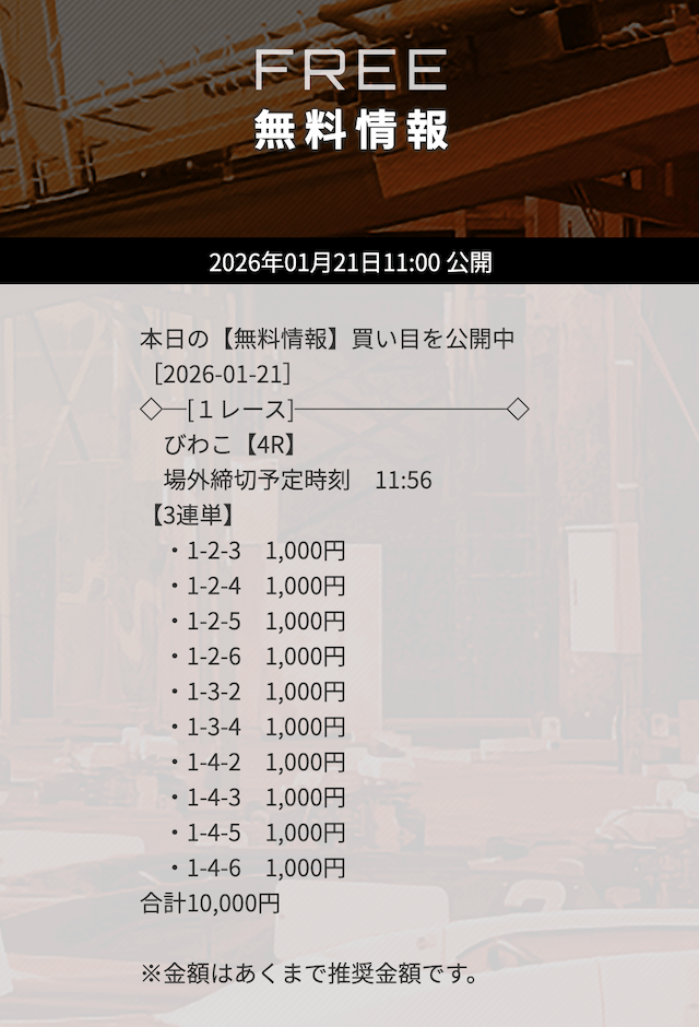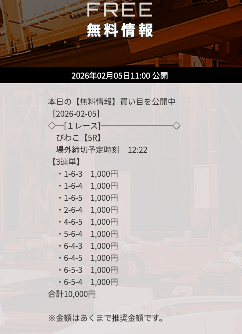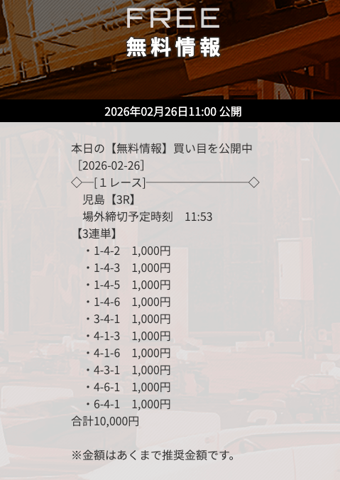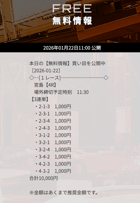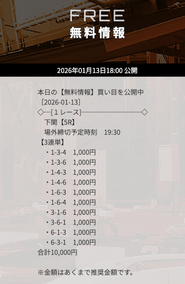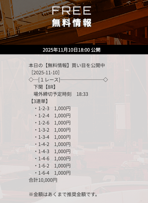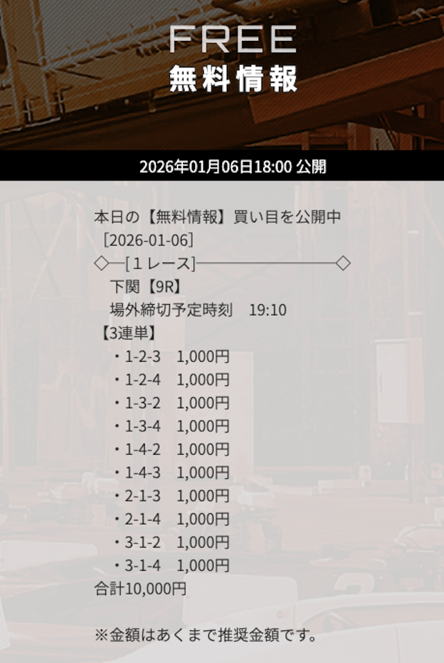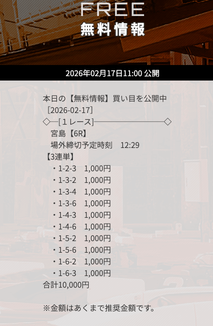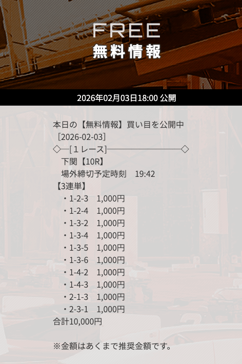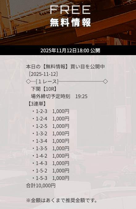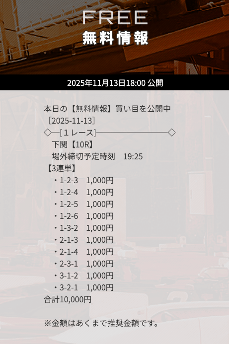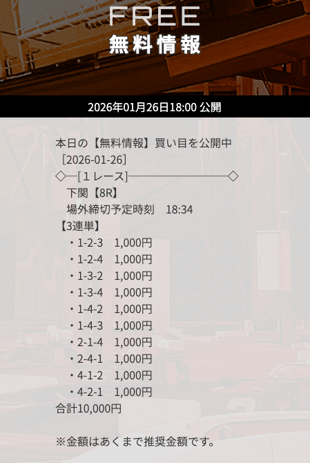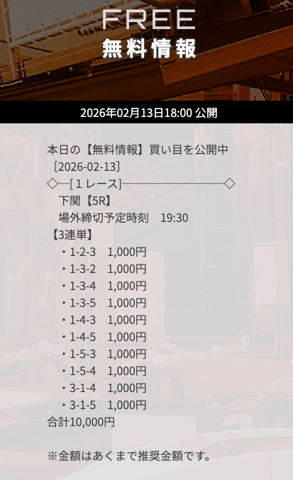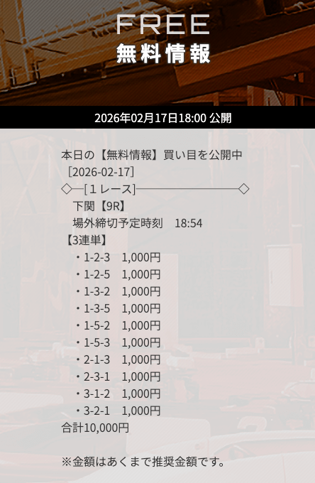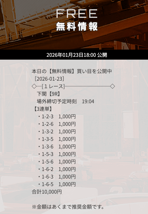 無料予想で「下関」の予想が公開されたら、迷わず参加するようにしましょう。