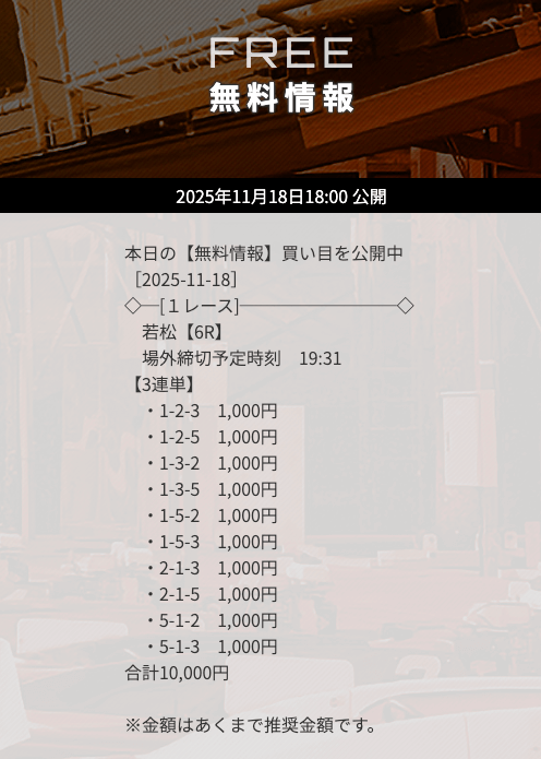 | 11/18 | 若松9R | 不的中 | 0円 |  |