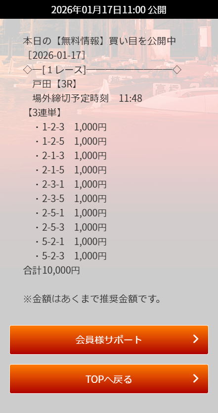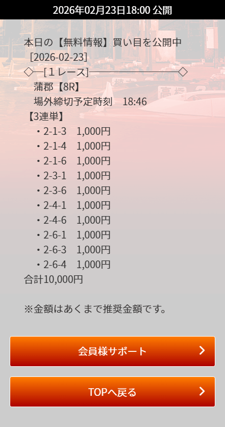 お得な特典なので、有料予想に参加する際は忘れずに活用してください。