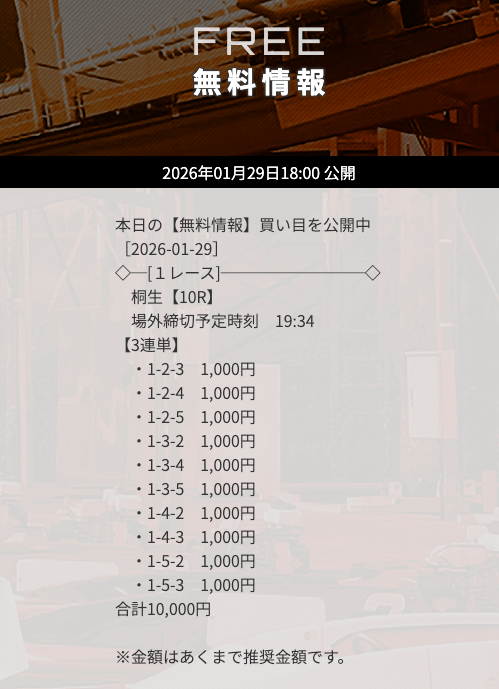 | 10/7 | 桐生9R | 的中 | 47,400円 |  |