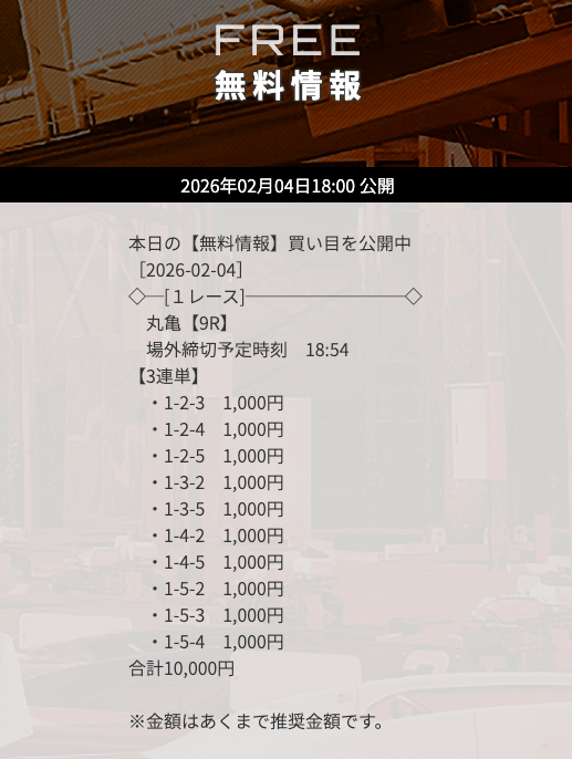 | 12/23 | 丸亀8R | 的中 | 16,000円 |  |