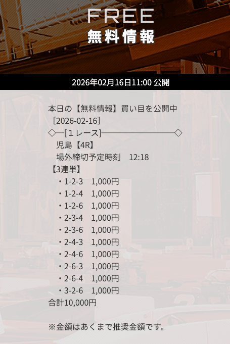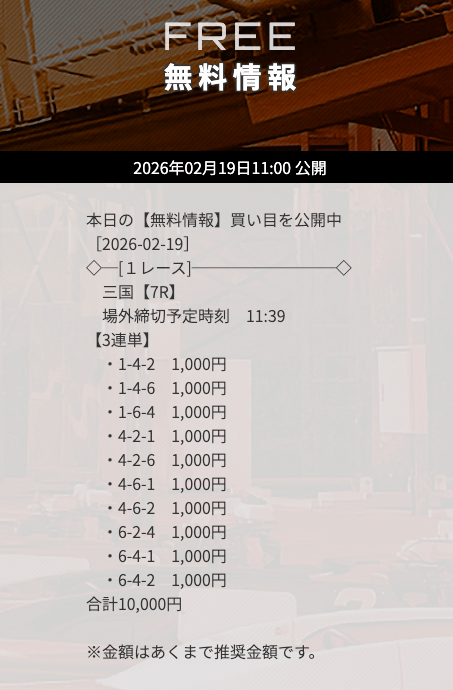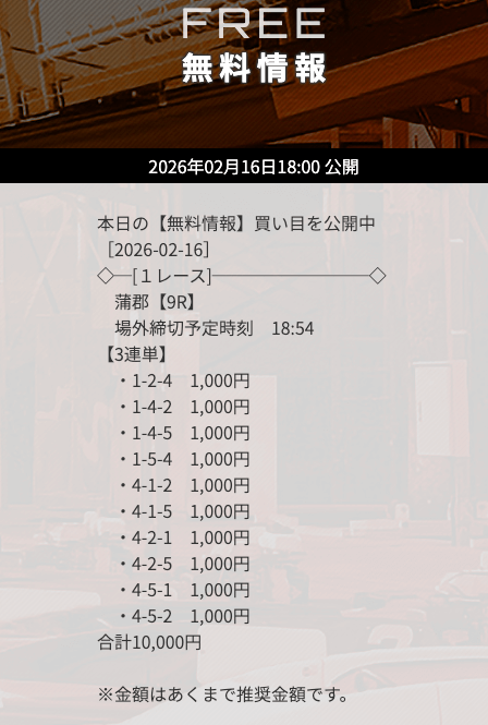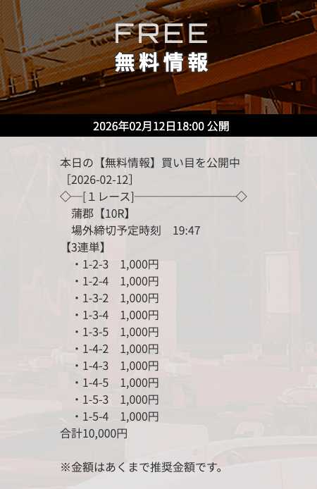 - 公開数:1日2レース(毎日)