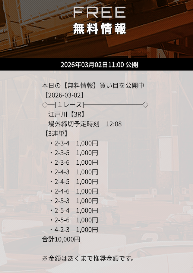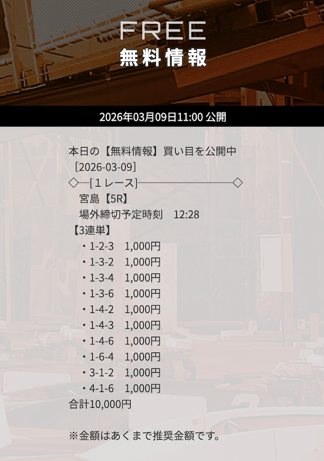 - 舟券代:10,000円