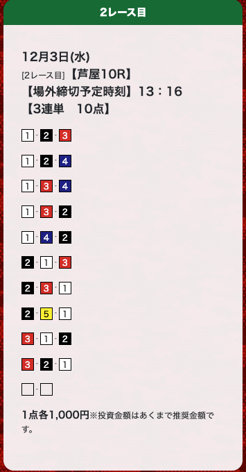 この10,000円のポイントがあると考えても、慎重に有料予想の利用は検討したいと思います。