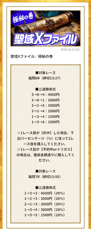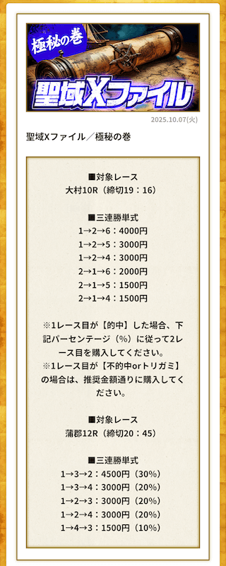 2025/10/7 聖域Xファイル/極秘の巻 情報料金+舟券代 18,800円+15,000円 |