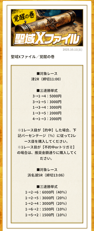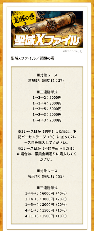 2025/10/11 聖域Xファイル/覚醒の巻 情報料金+舟券代 22,800円+30,000円 |