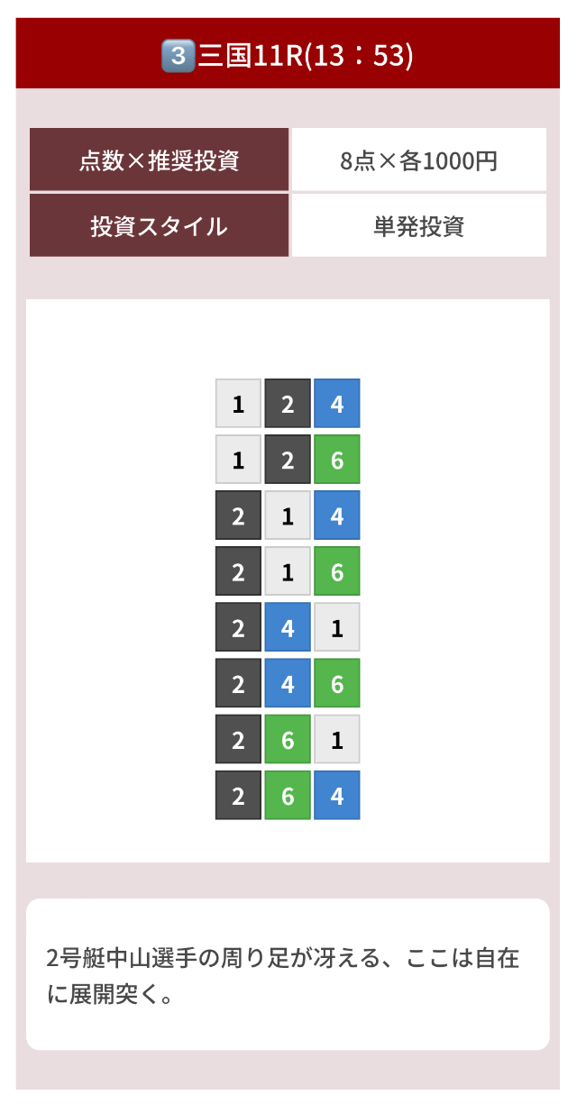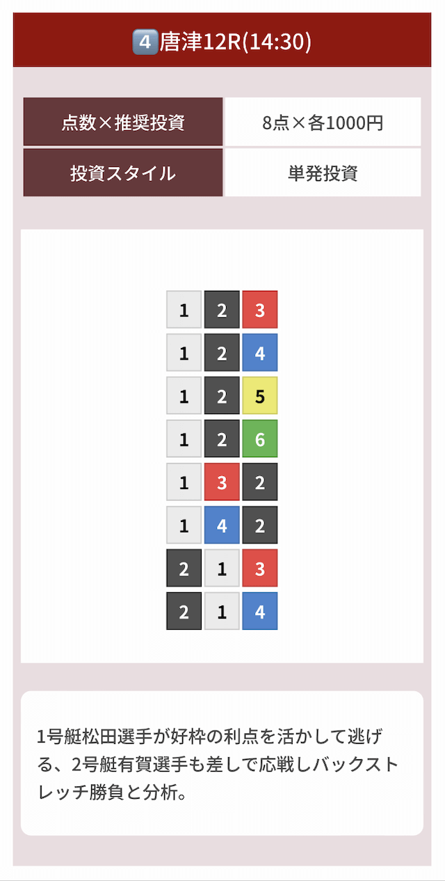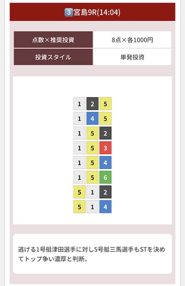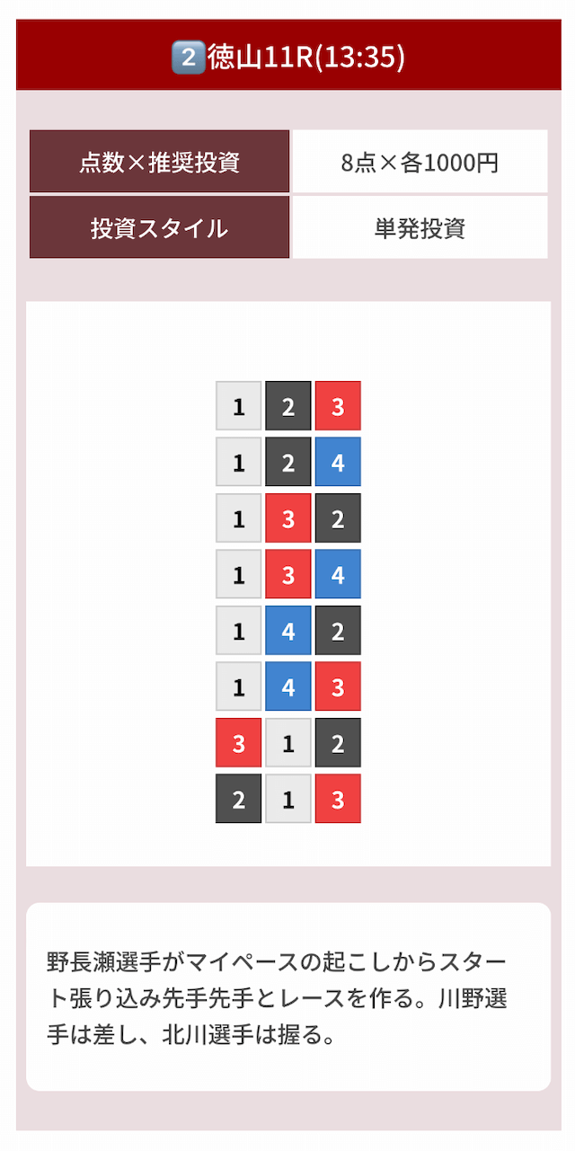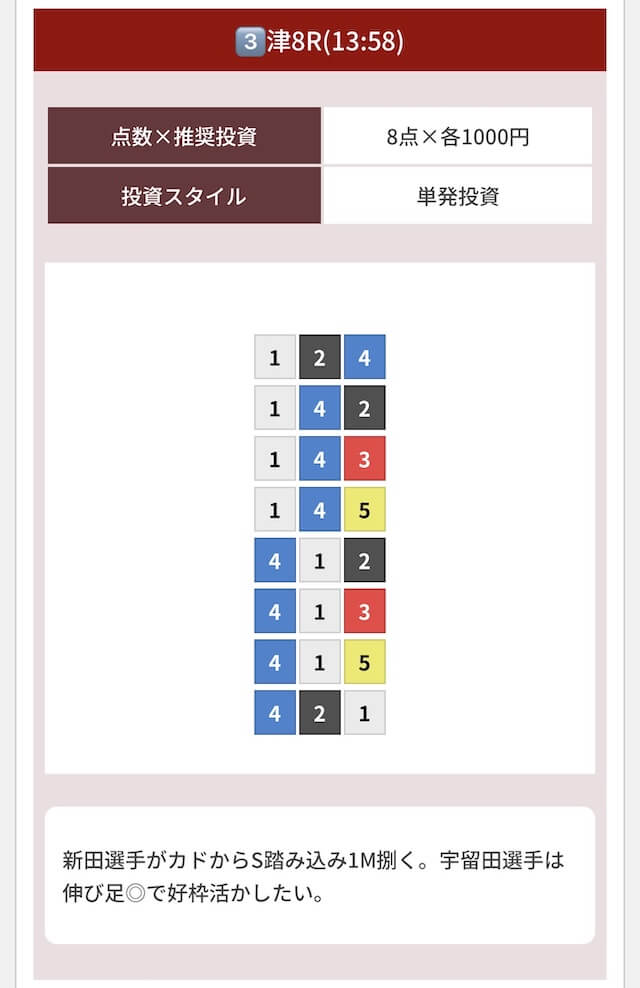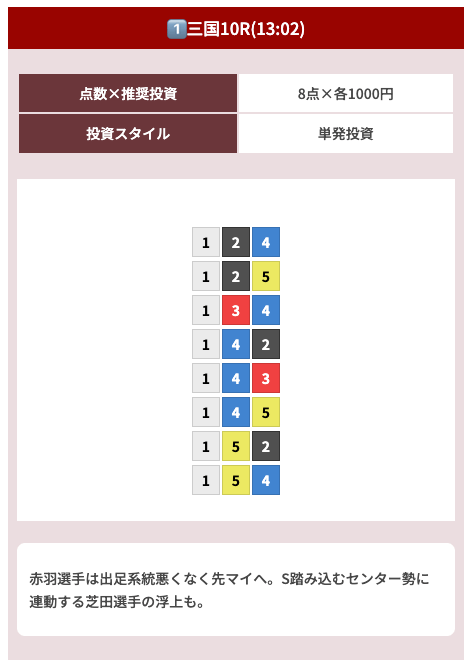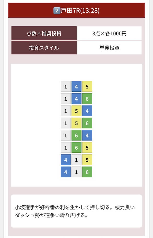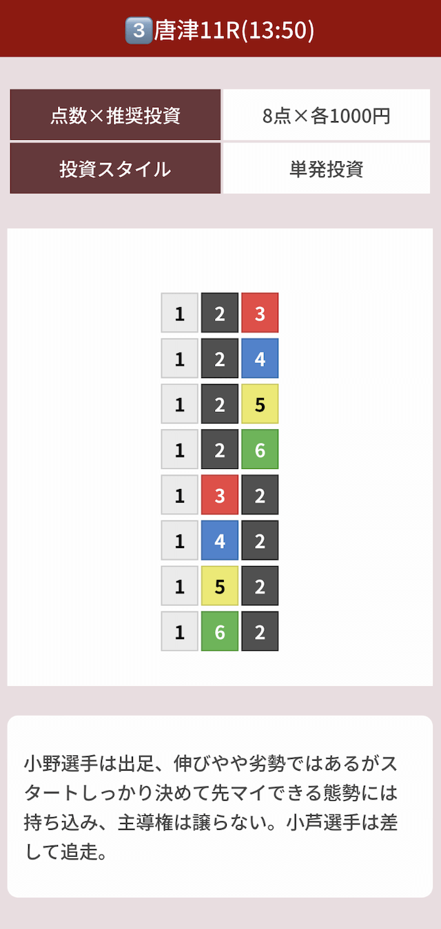 あくまでも俺の意見なんだけど、無料予想で毎回同じような展開を狙ってる気がして、新鮮さや応用力に欠ける気がした。