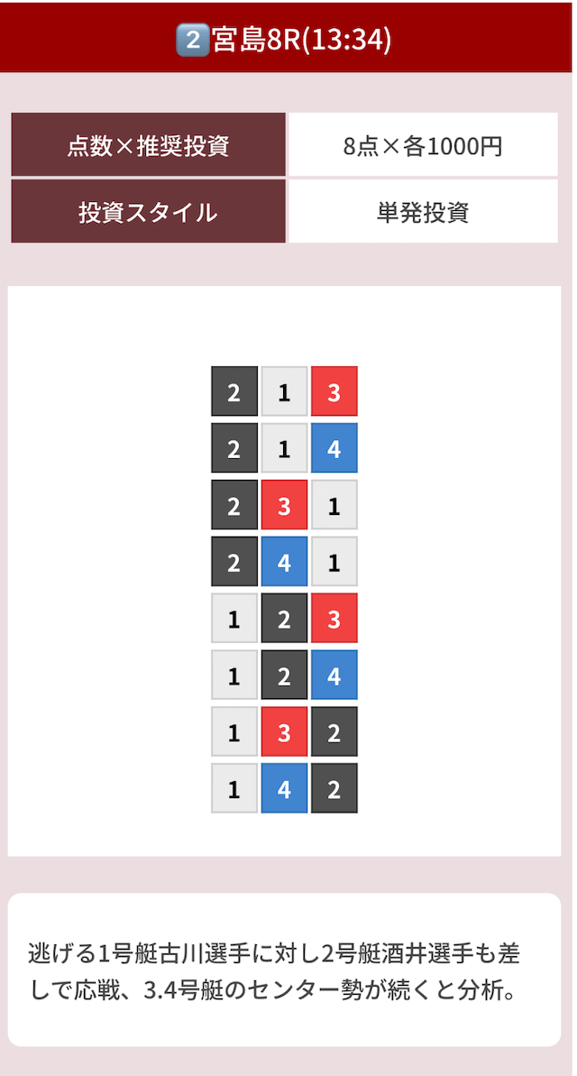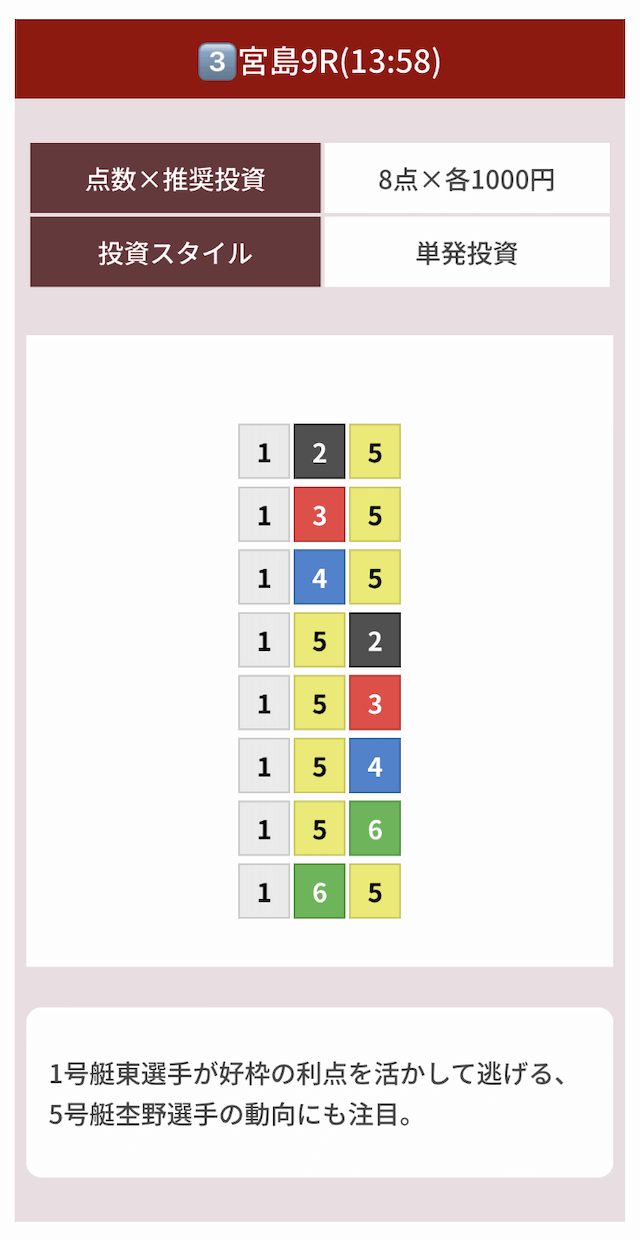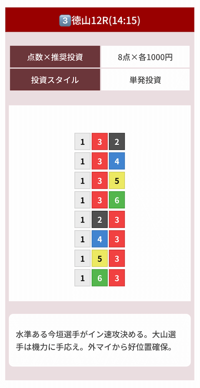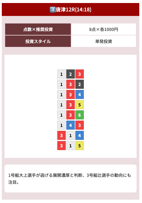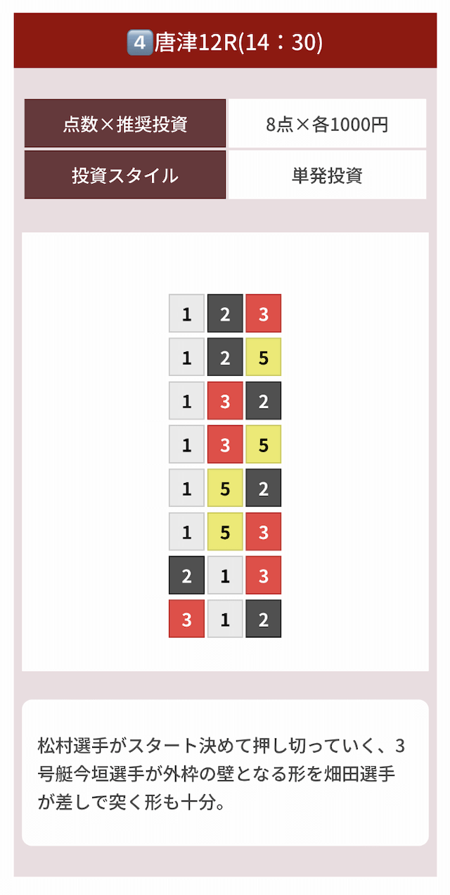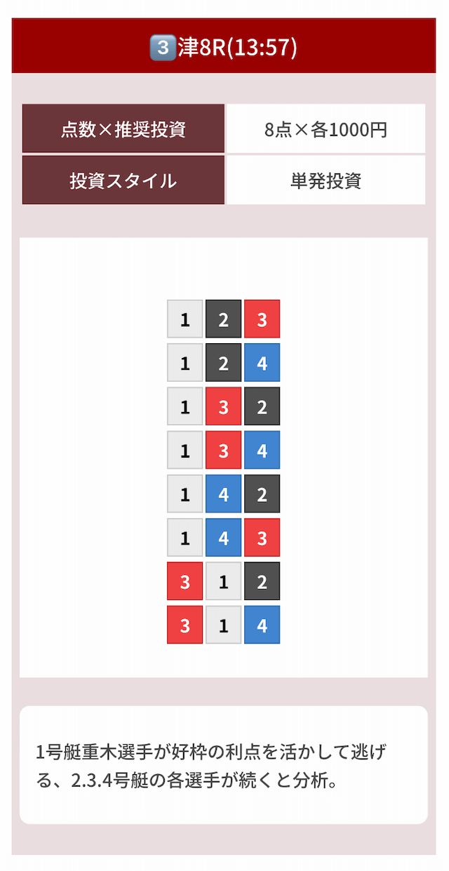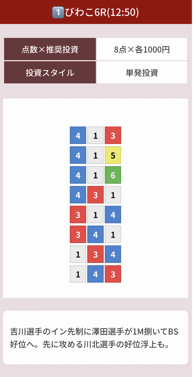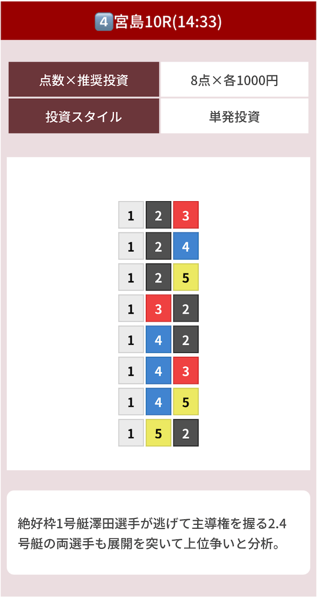 あくまでも俺の意見なんだけど、無料予想で毎回同じような展開を狙ってる気がして、新鮮さや応用力に欠ける気がした。