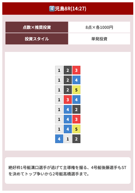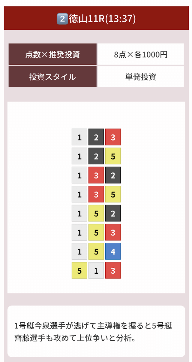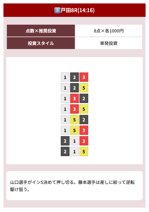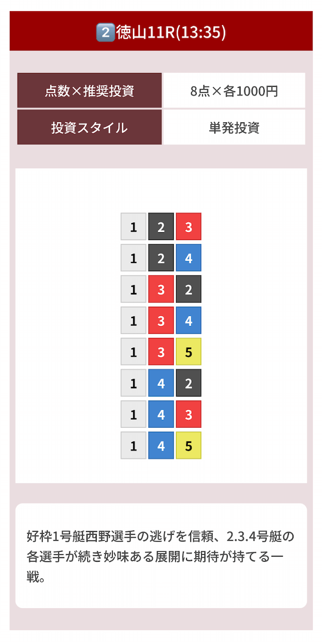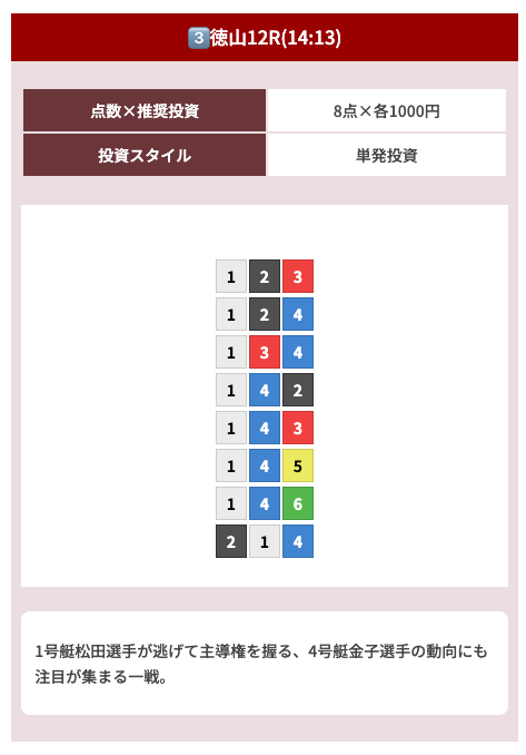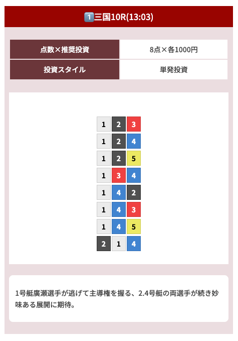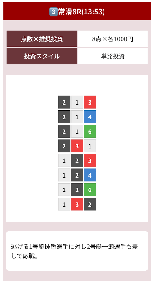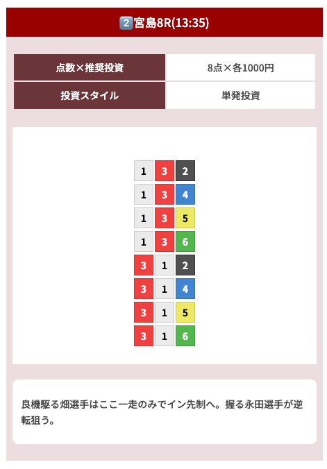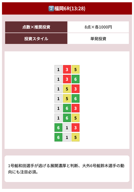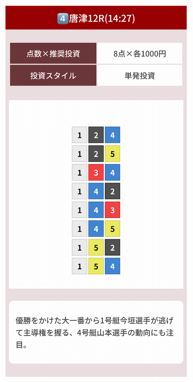 あくまでも俺の意見なんだけど、無料予想で毎回同じような展開を狙ってる気がして、新鮮さや応用力に欠ける気がした。