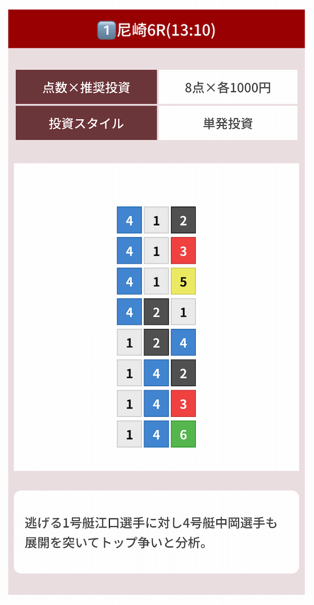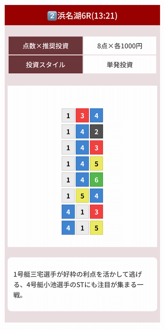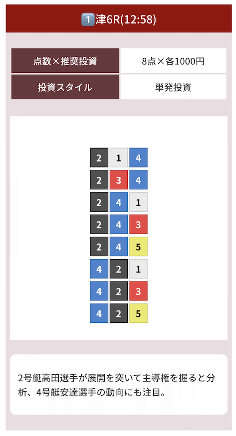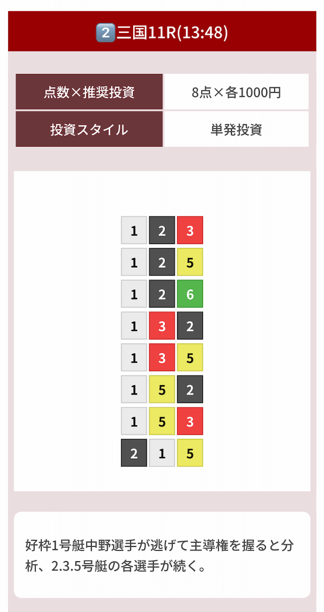 予想以外のコラムや学び系コンテンツが無くて、ただの競艇予想サイトって印象で面白みはない。精度が高いのにちょっと勿体ない気がする。