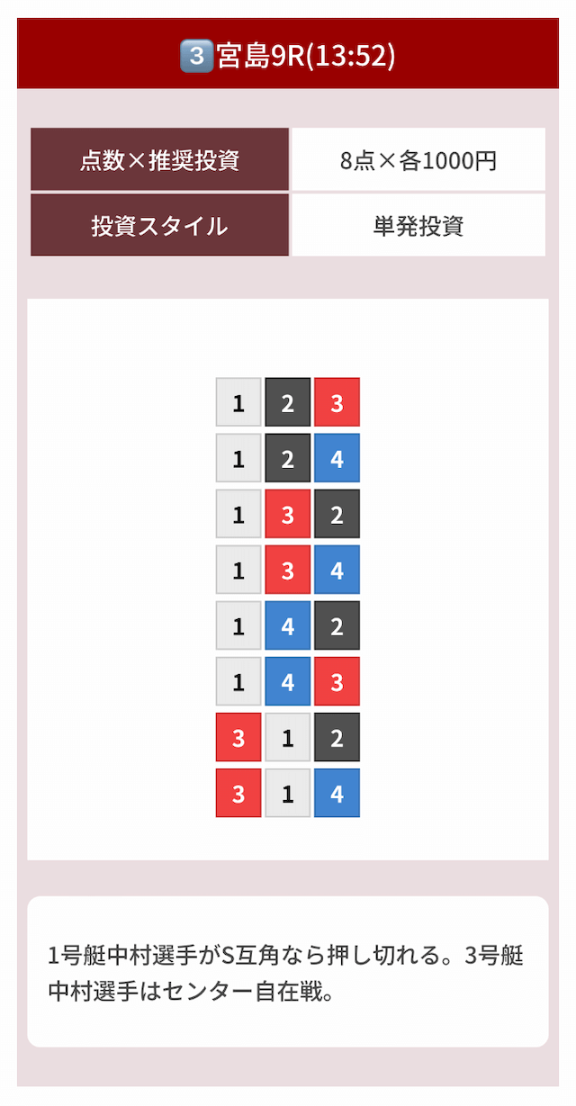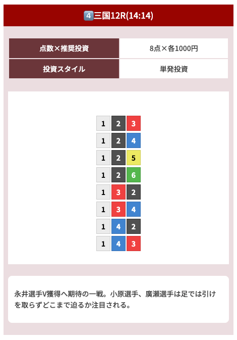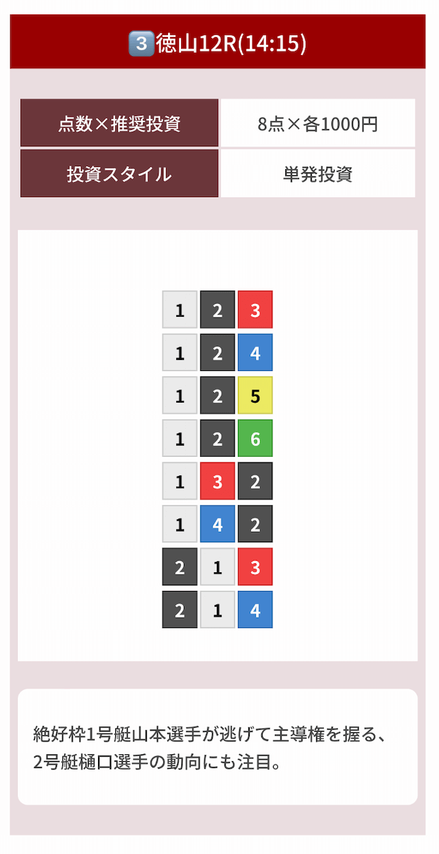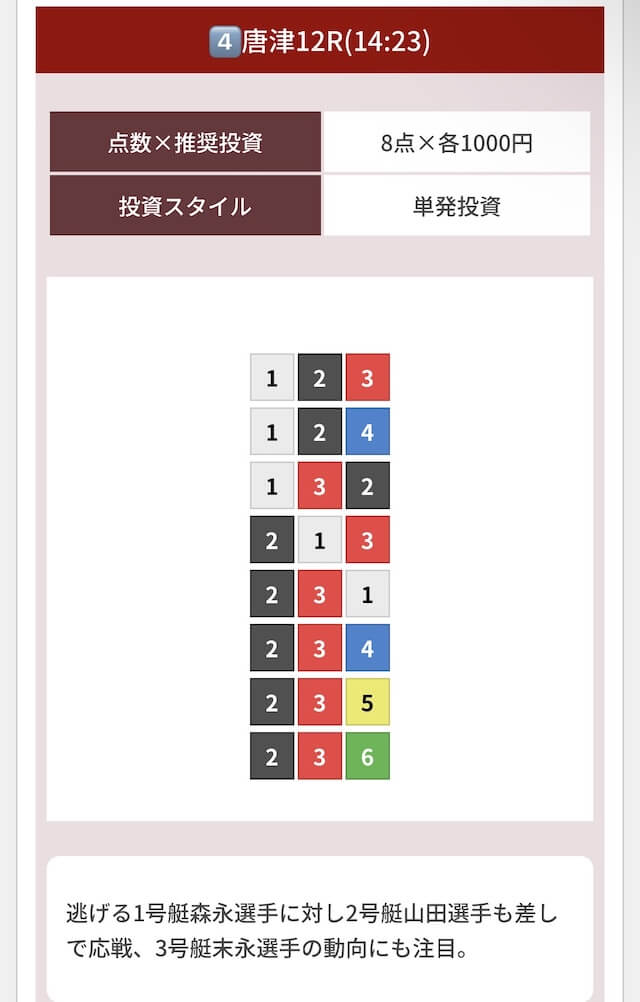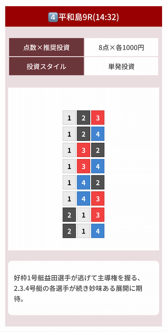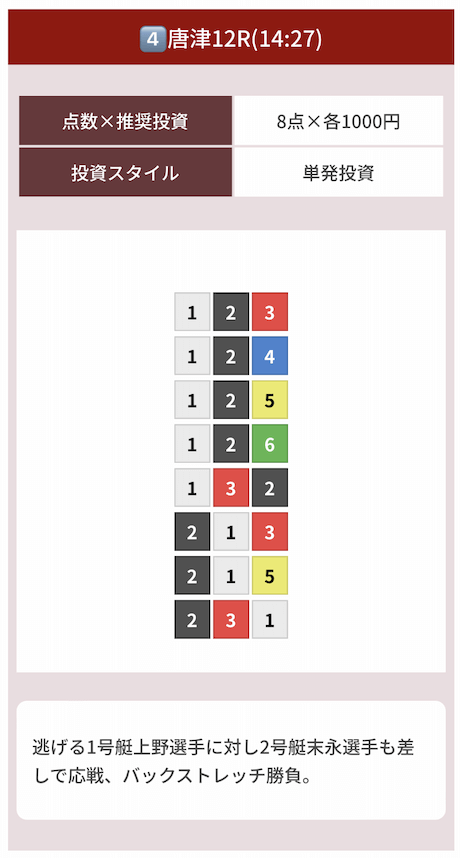 - ↪外れたら再度「無料予想」に参加して立て直す