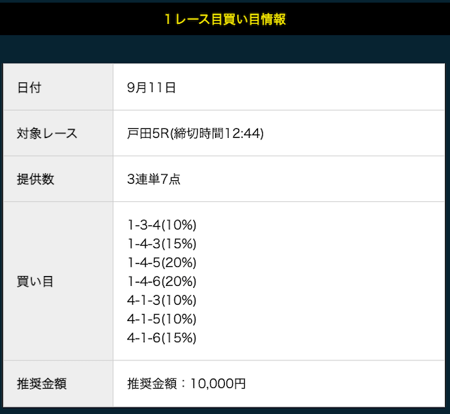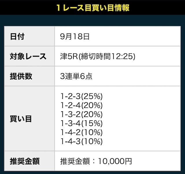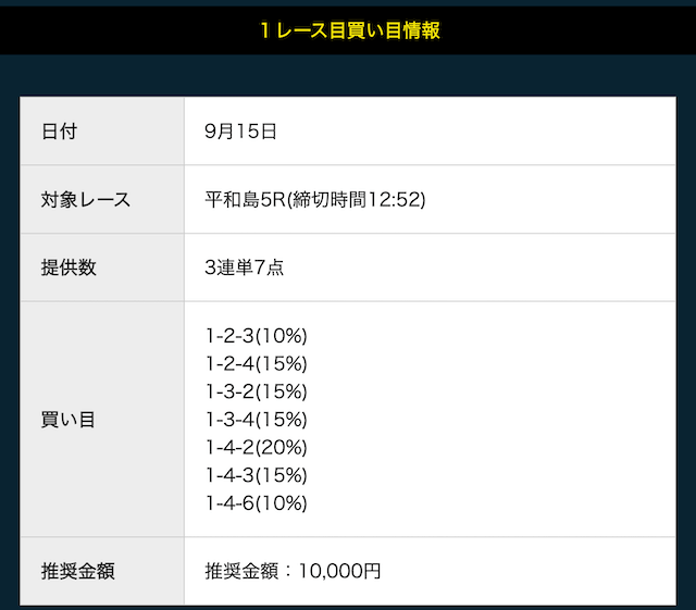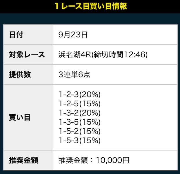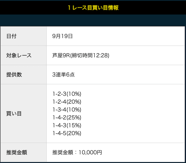- 推奨舟券代:10,000円