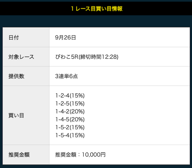 - 最初は無料だからと軽く試しただけだったけど、3日連続で的中。的中率が高くて正直驚いた。資金に余裕がないときでも安心して参加できるのが助かる。投稿日:2025/04/29