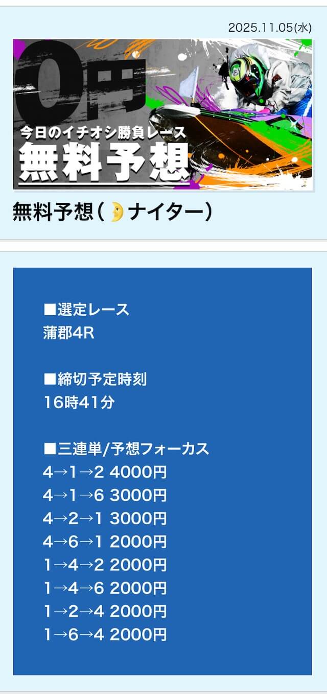 匿名ボートレースパレードの一番の特徴は人気が割れるレースに参加していることだよな。人気決着でも稼げるんだけど、更にオッズを踏まえた資金配分まで徹底されているから、マジで稼げるんだよww投稿日:2025/04/21