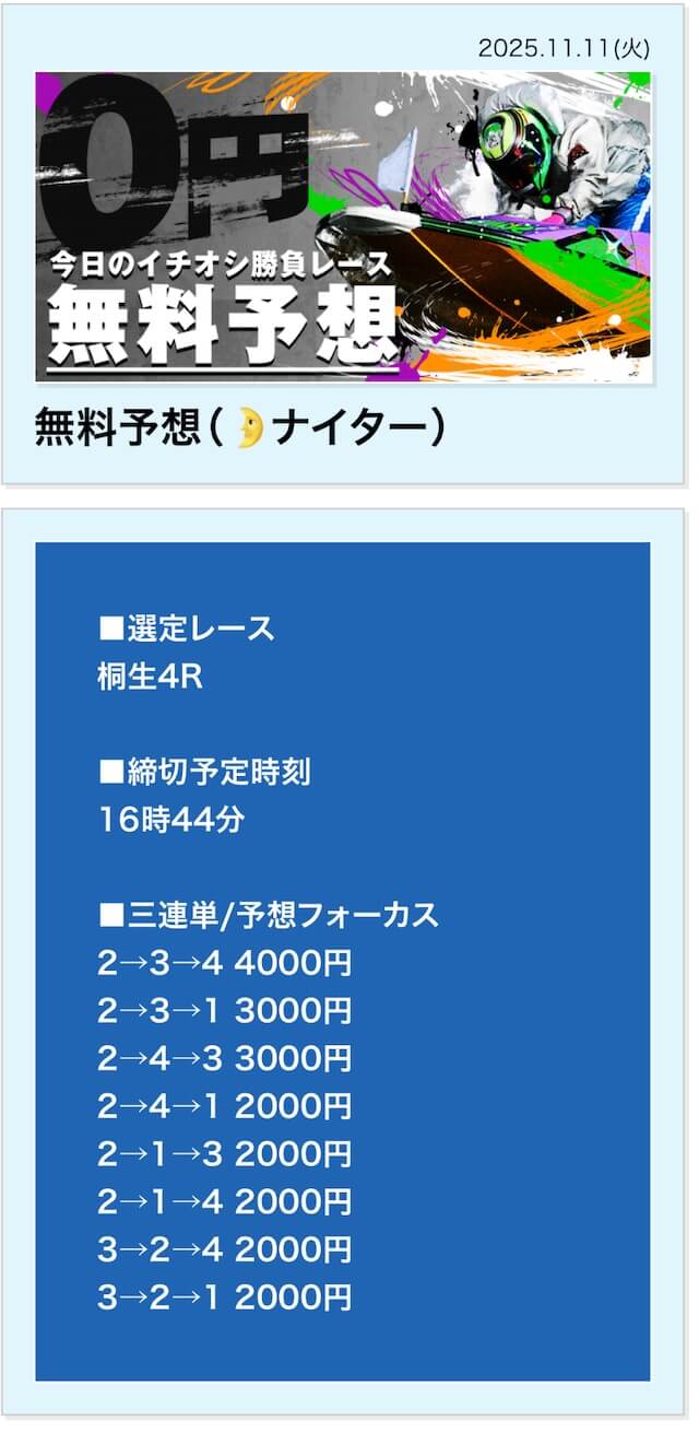 - 火曜は予想が公開されない(無料予想・有料予想)