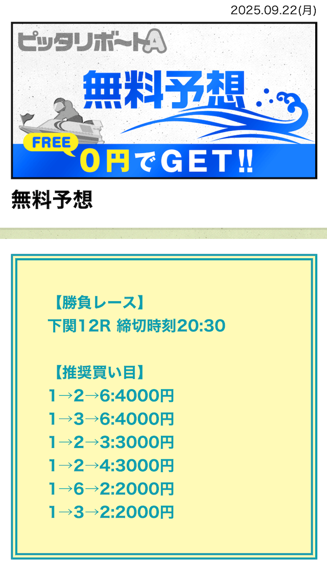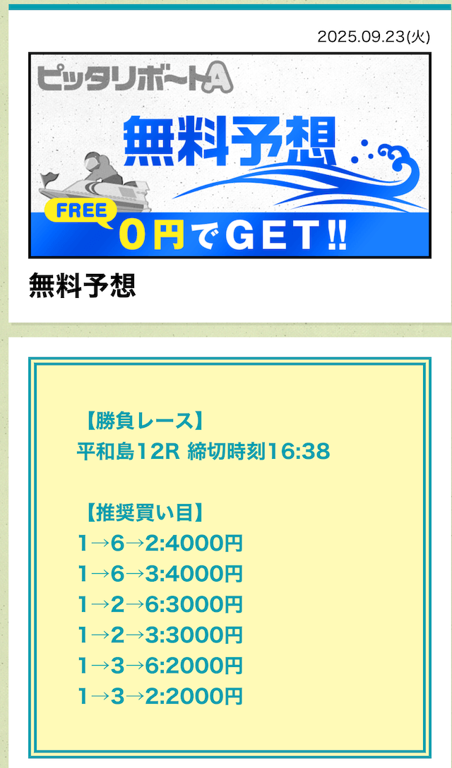 | 2025/1/23 超春!!現地直送ルート・1つ星 情報料金+舟券代 16,500円+16,000円 |