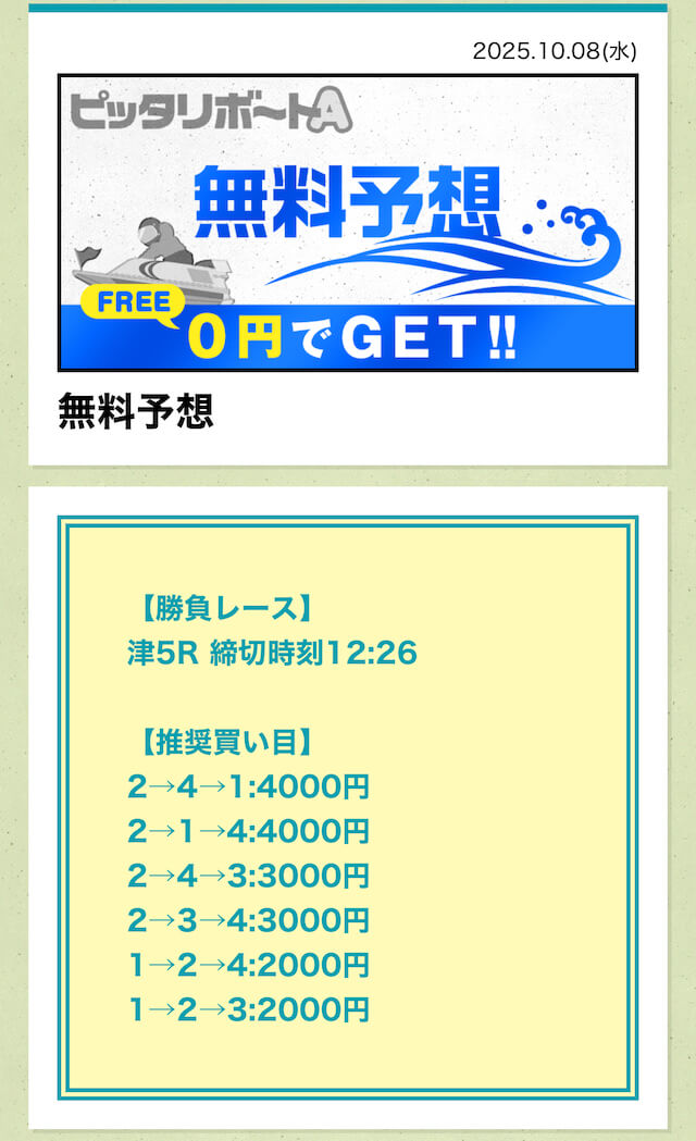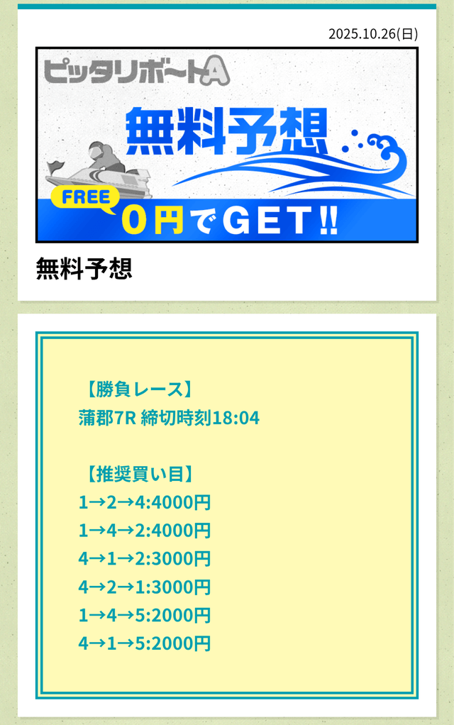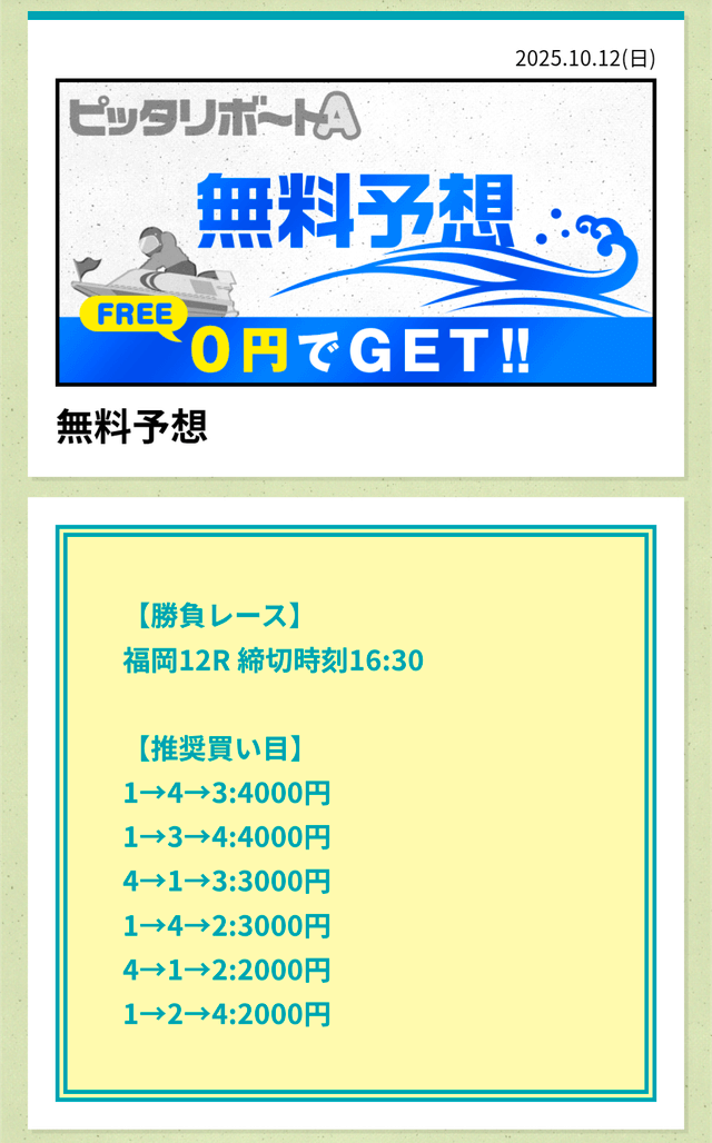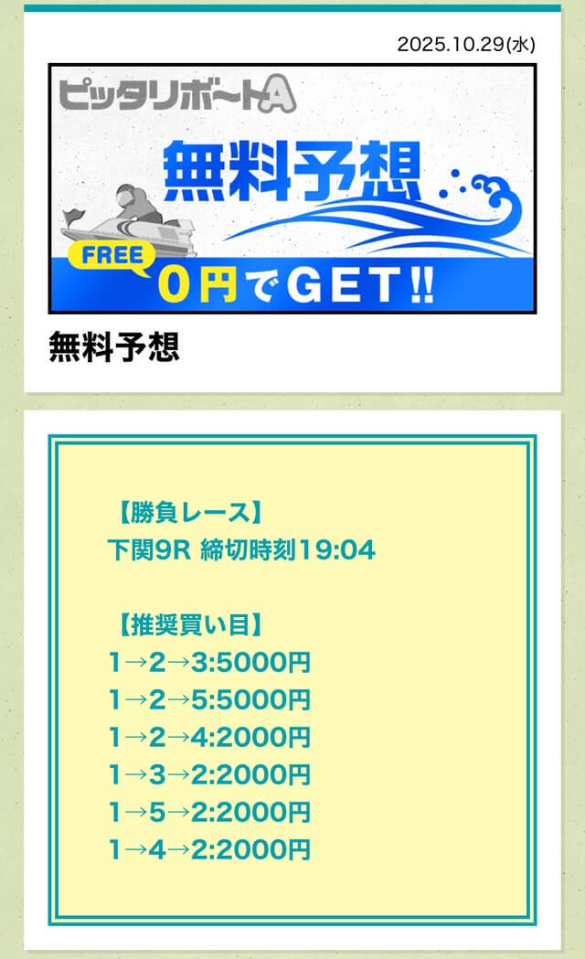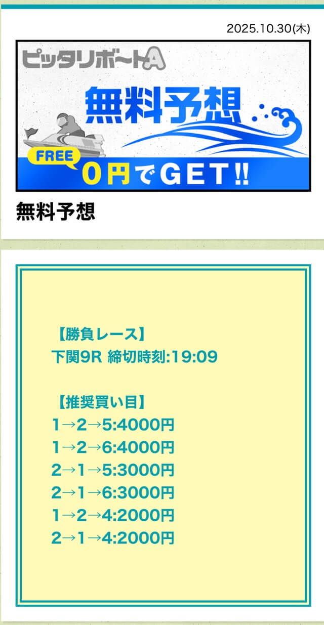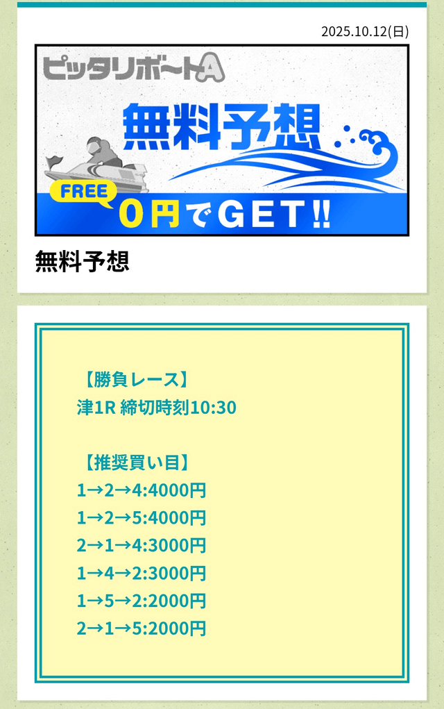 ピッタリボートAの無料・有料予想の累計結果・口コミを随時更新中!