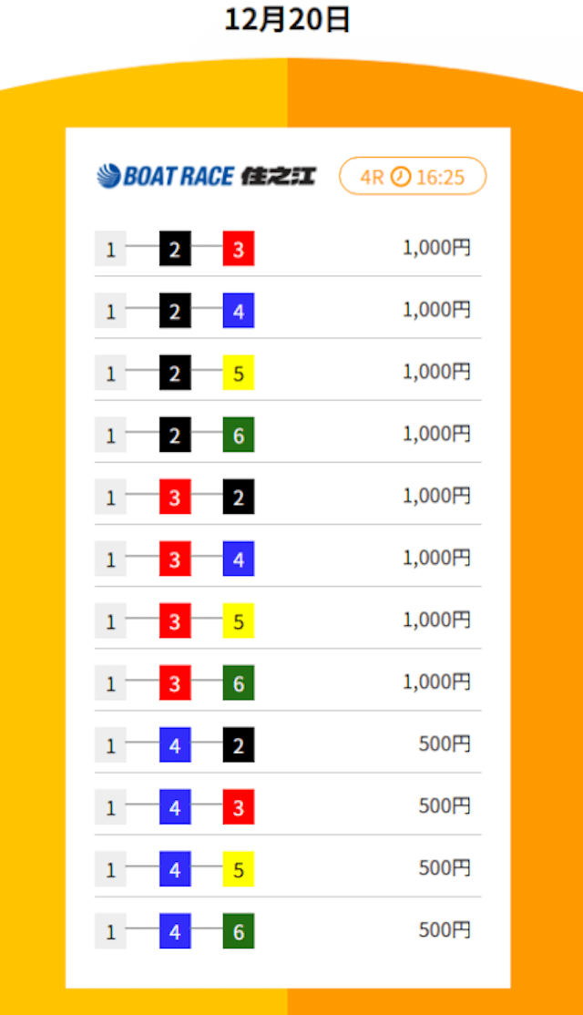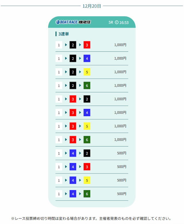 | 5R予選 | 1-2-4 | 4番人気 | 1,310円 | 本線:1-234-234 |