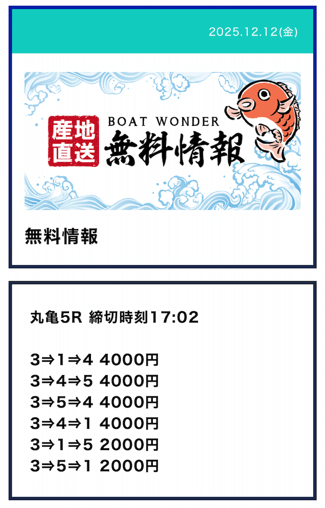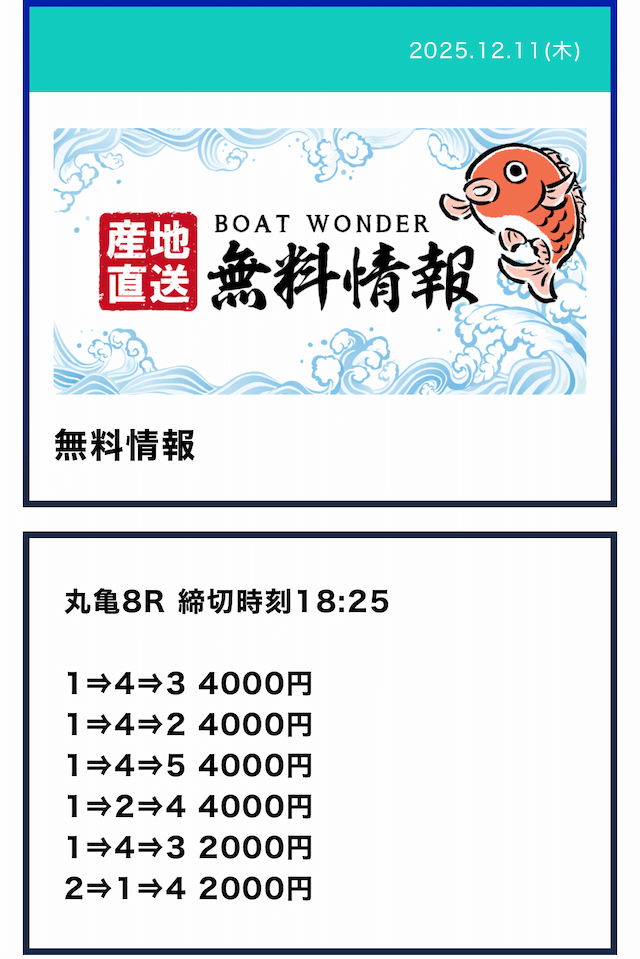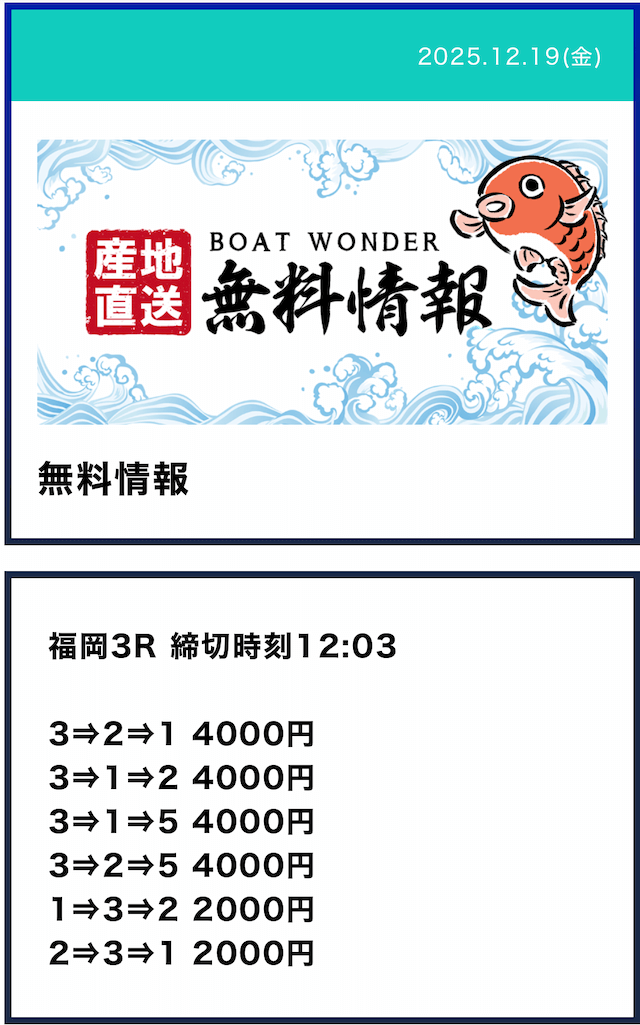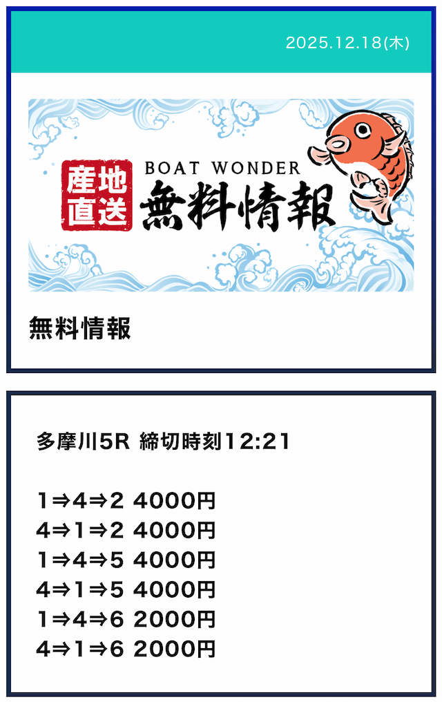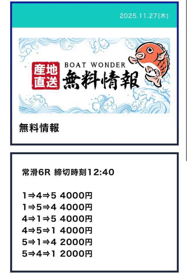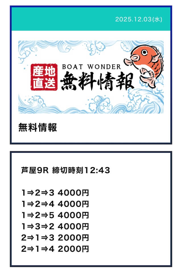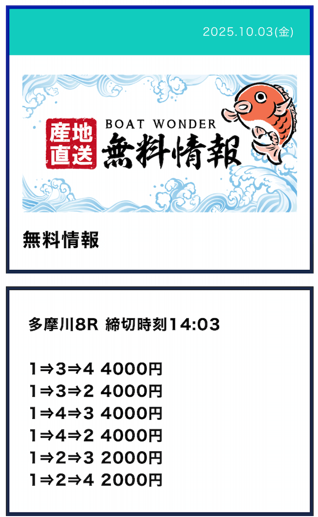 ボートワンダーって定休日あんのか。毎日公開されると思ってたから残念。昔使ってたサイトは毎日公開されてたから良かったのに。
