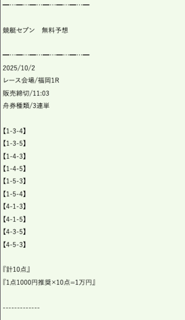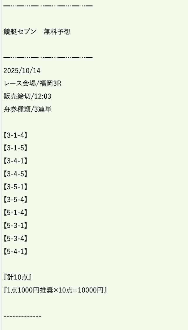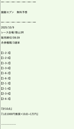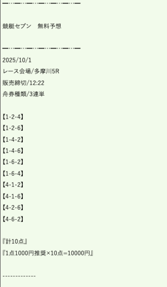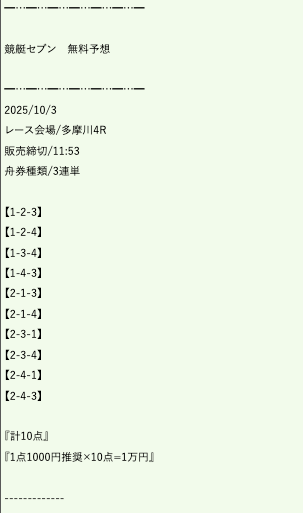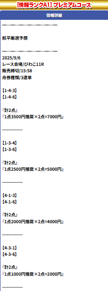 - 無料予想にたまに大ブレがある。特にオッズが大きく動いた日は外しがち。もう少し精度の安定感が欲しい。投稿日:2025/08/25