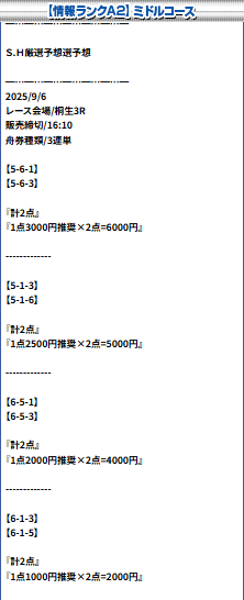無料予想のくせに的中率も回収率も文句なし。控えめに言って有料級。むしろ他サイトの有料予想より安定してる。投稿日:2025/09/02