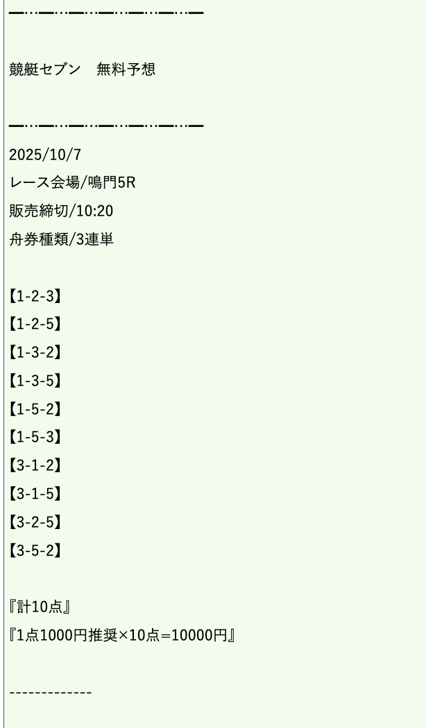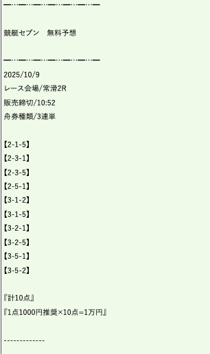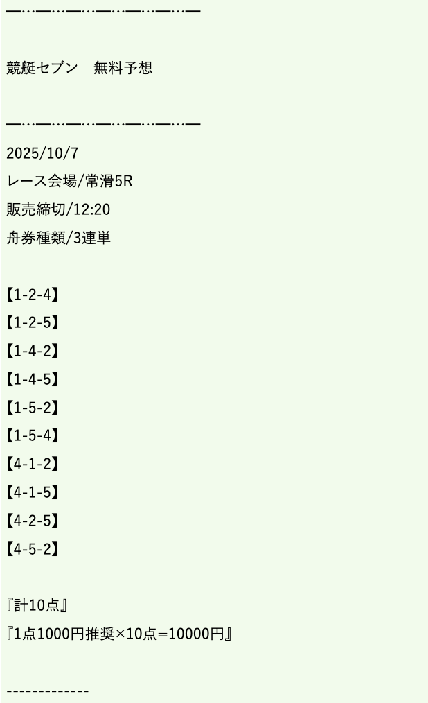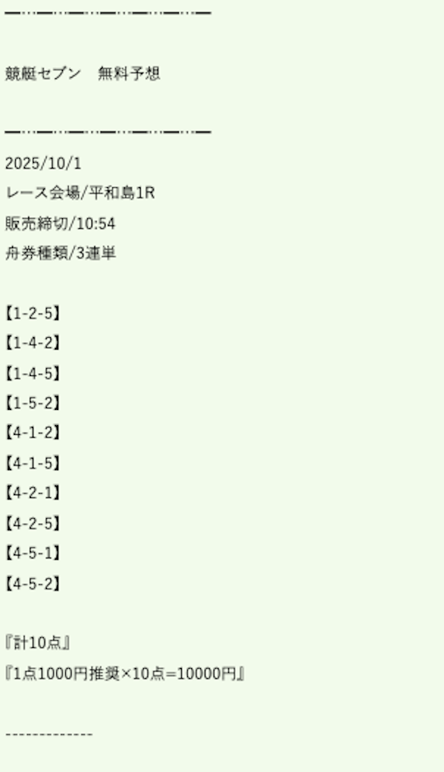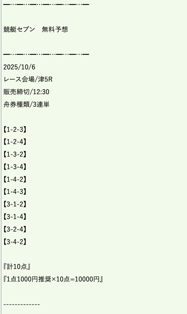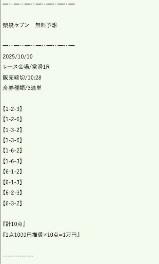 競艇セブンの無料予想は穴狙いのレースを普通に的中させてくるから、他の競艇予想サイトとは一味違う感じがある。無料でここまでやれるのは本当に助かるな。投稿日:2025/09/03