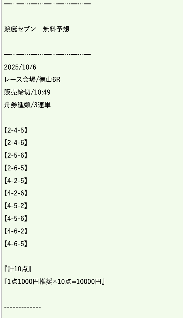 2025/9/6 ミドルコース 情報料金+舟券代 0円+17,000円 |