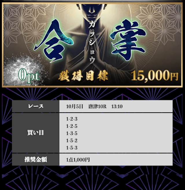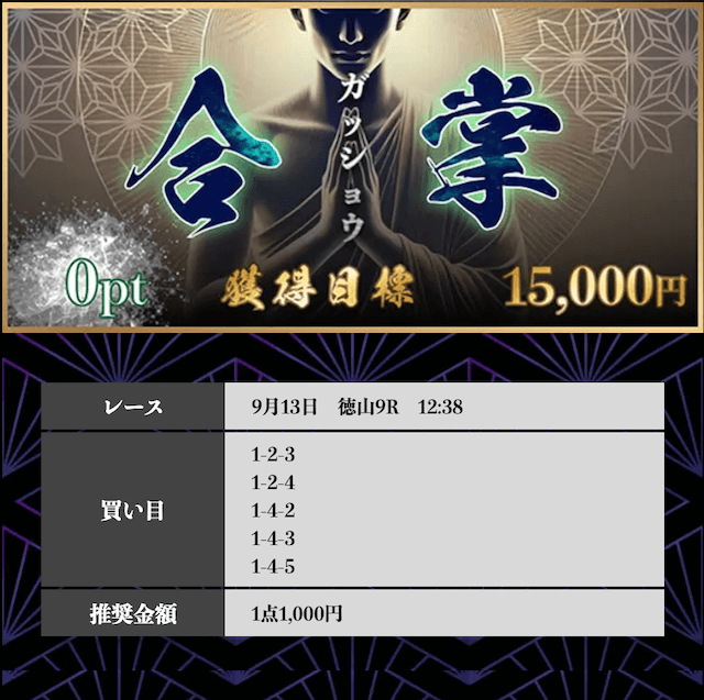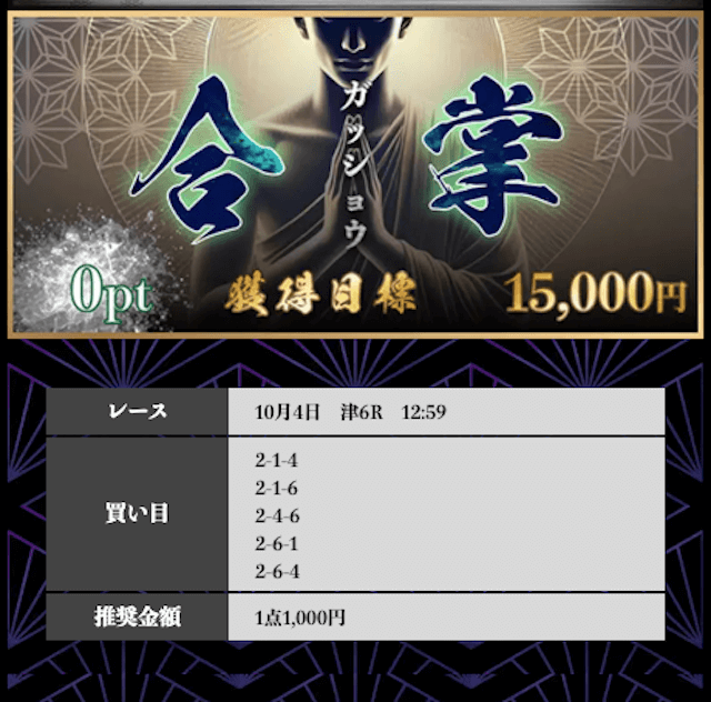 正直、最初は半信半疑でした。でも、無料予想がしっかり当たってたので有料プランに参加してみたら…ガチで的中。1日で3万近くの回収は初めて。「修羅」の名は伊達じゃないです!