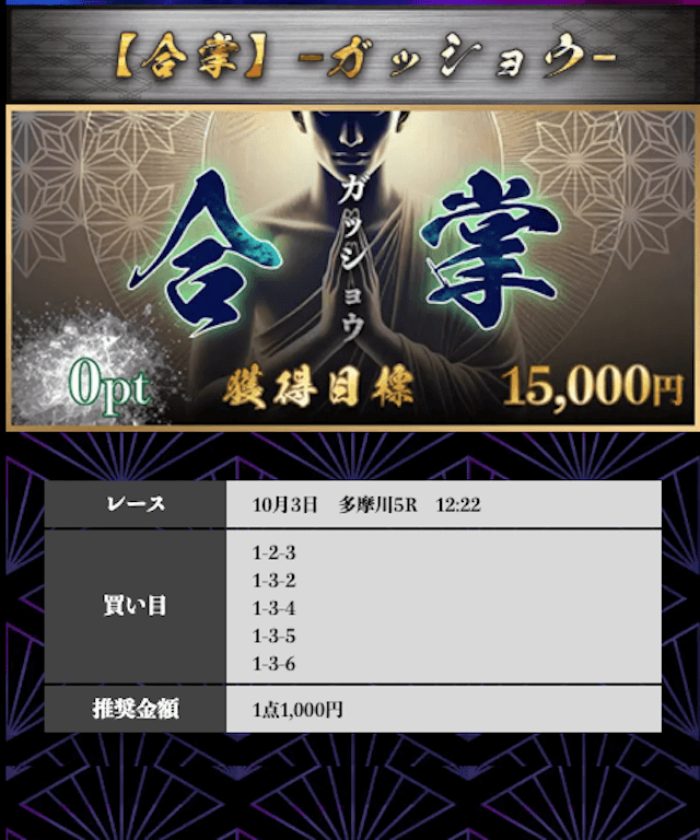 口コミを見る限り、無料予想でコツコツと資金を貯めて、タイミング見て「金剛」「観音」に参加していくのが、勝ち筋って感じだな!いきなり高額プランに突っ込んで軍資金がバーストしてるヤツも実際にいる⋯。焦ったら負け、これは予想サイトの鉄則だな!