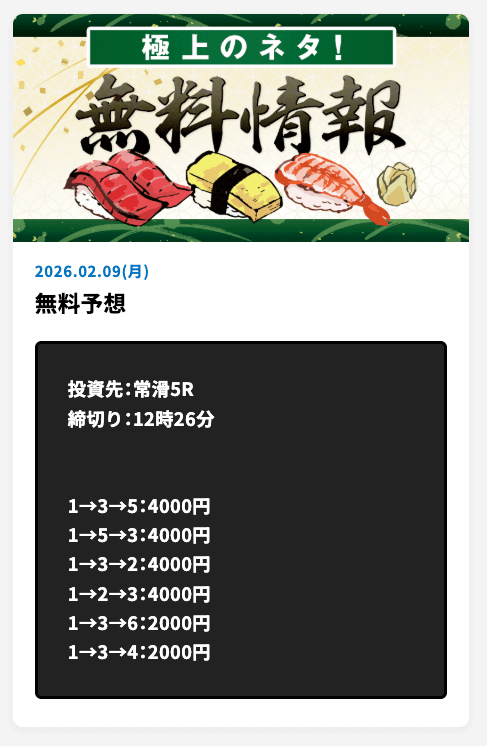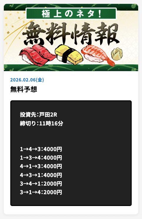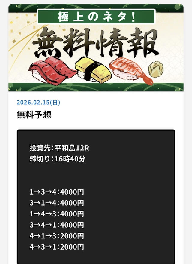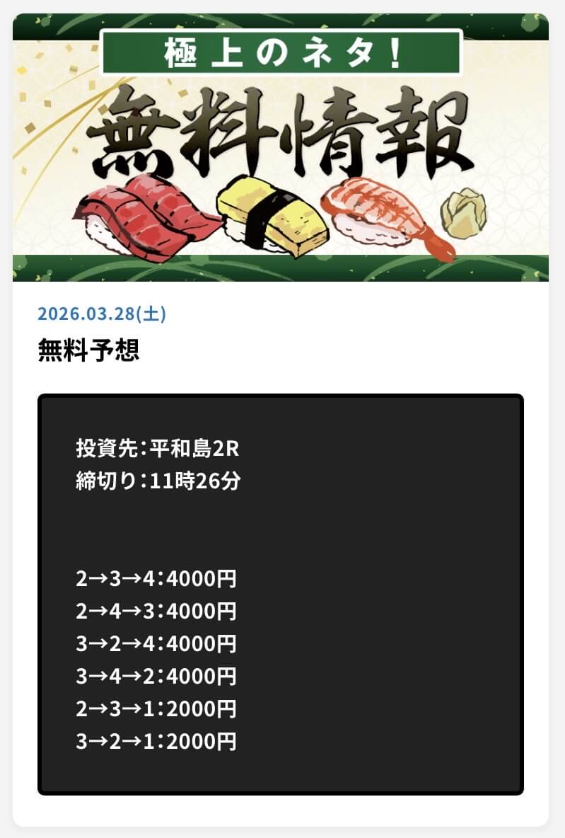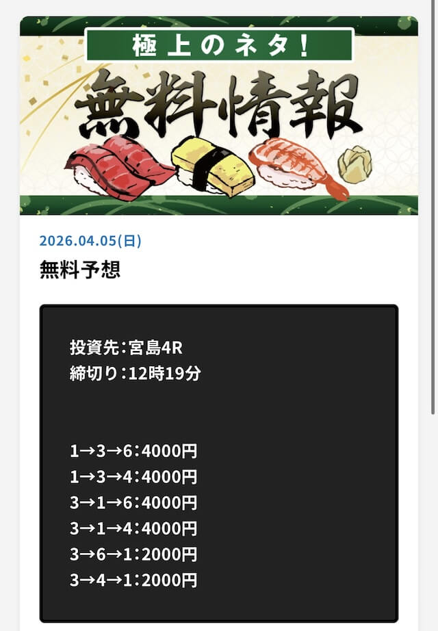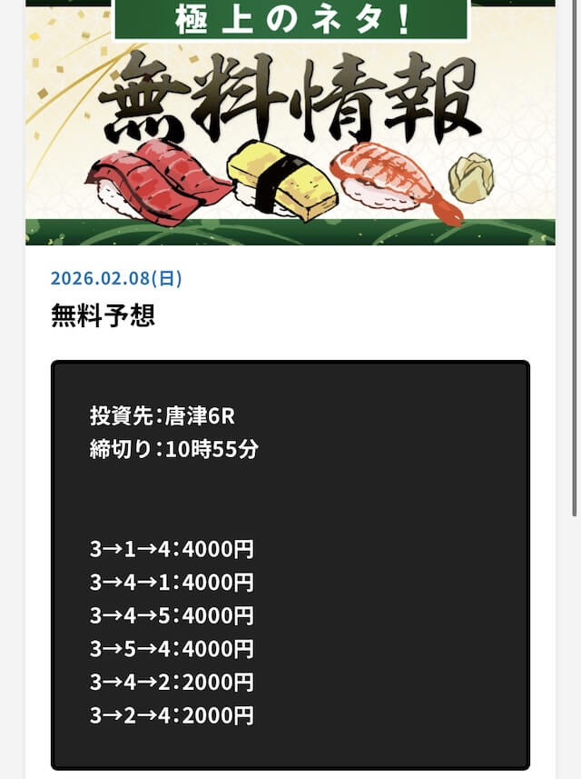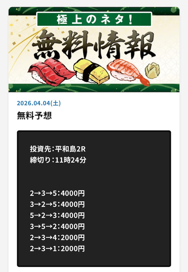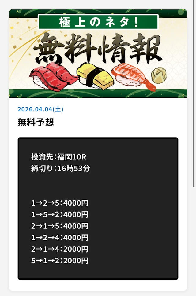 言うほど無料予想の的中率は高いか?普通に外れる日もあるし、タイミング次第だと思うけど、長期的に参加するべきだと思います。