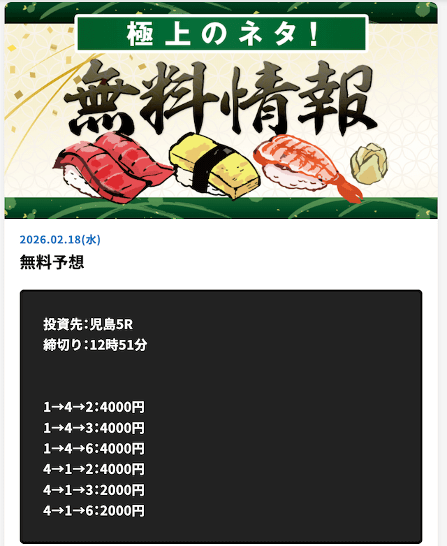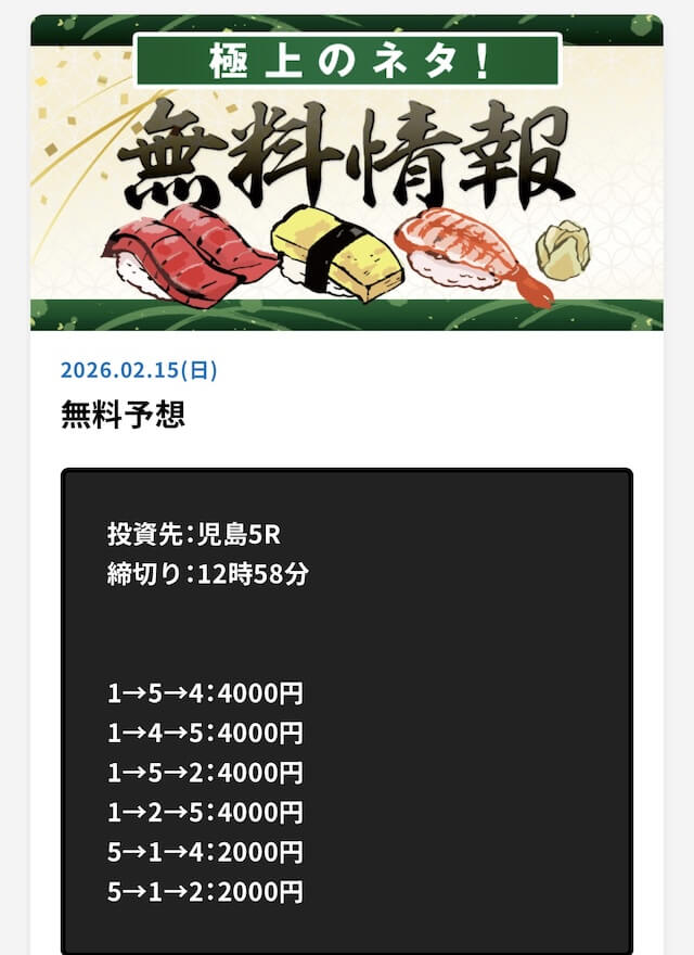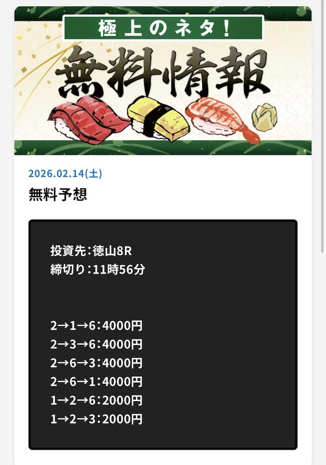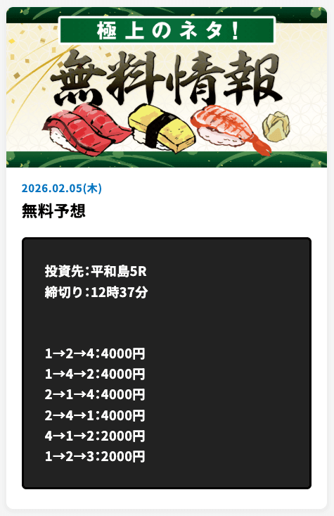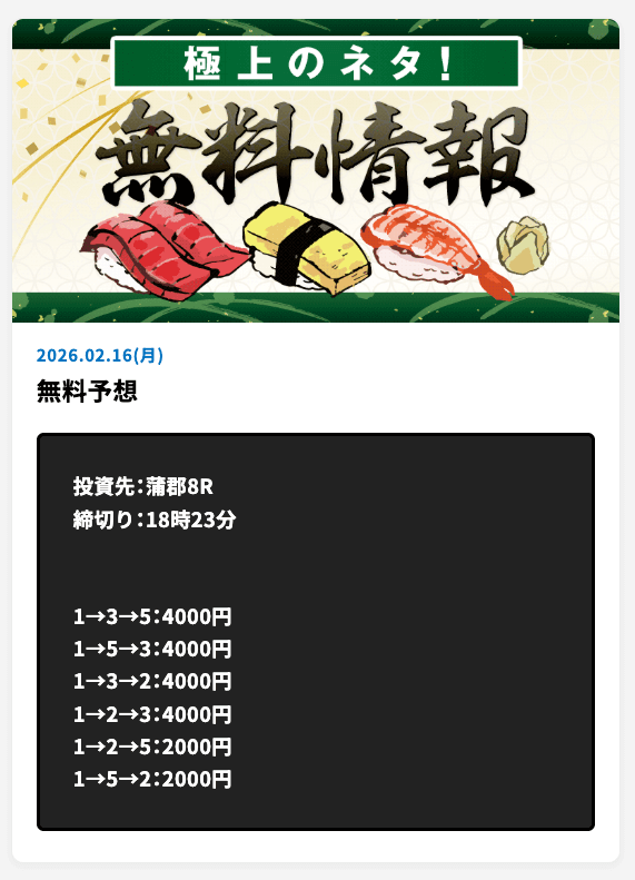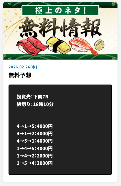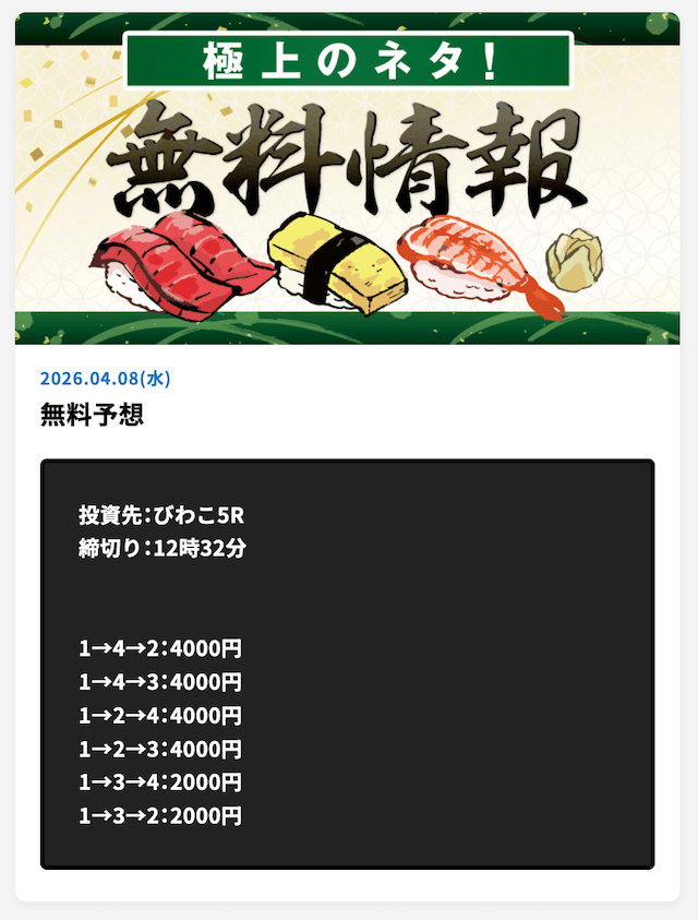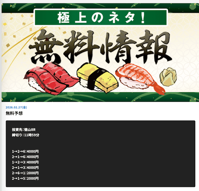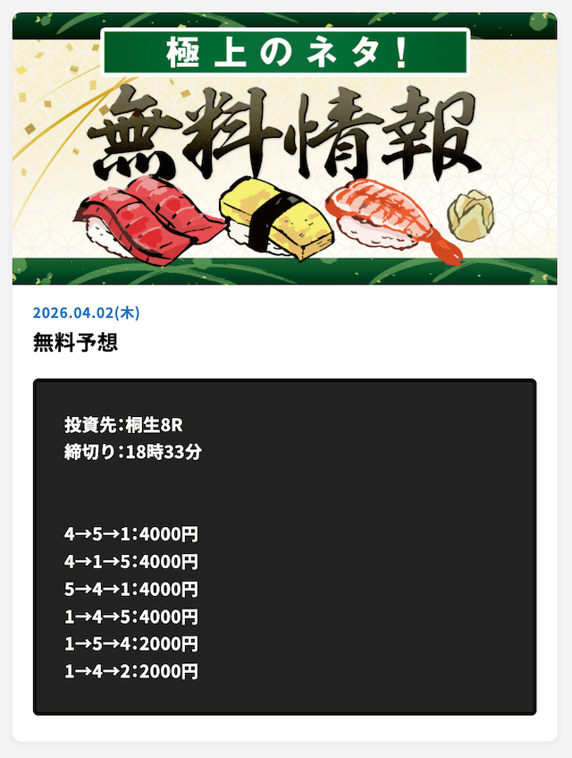 言うほど無料予想の的中率は高いか?普通に外れる日もあるし、タイミング次第だと思うけど、長期的に参加するべきだと思います。