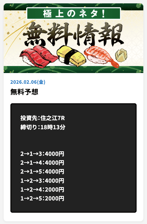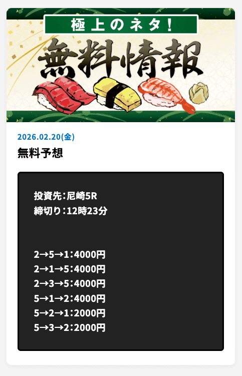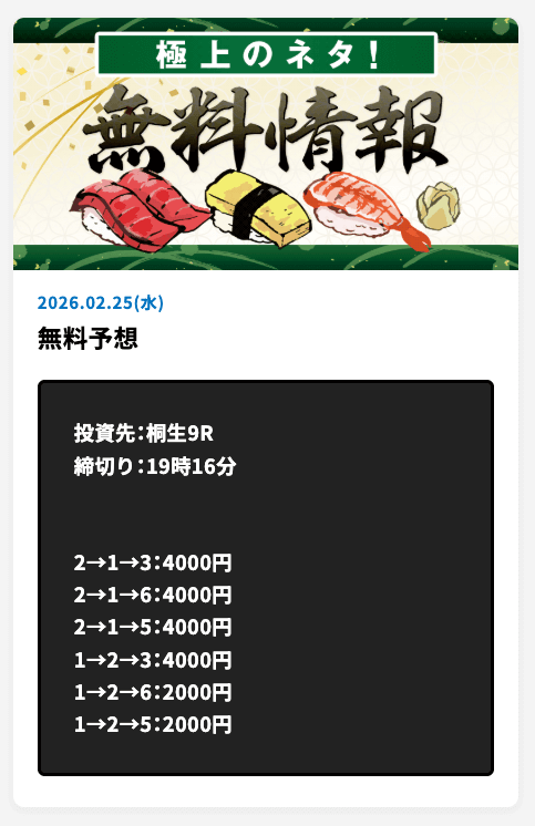 匿名短期間で大きく稼げるのが魅力だね。運営期間も長いし、それでいて無料予想がコンスタントに当たる。予想精度の高さは間違いないかな。投稿日:2025/12/12