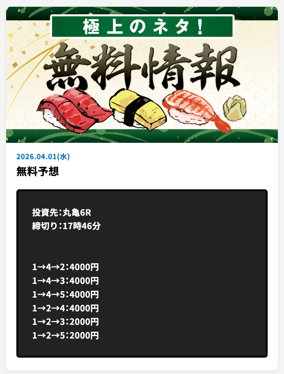 いざ、無料予想で勝負です!