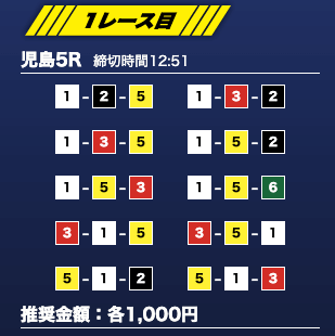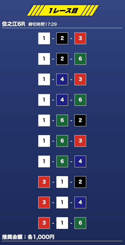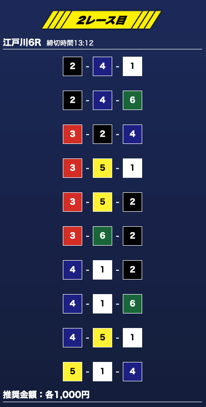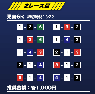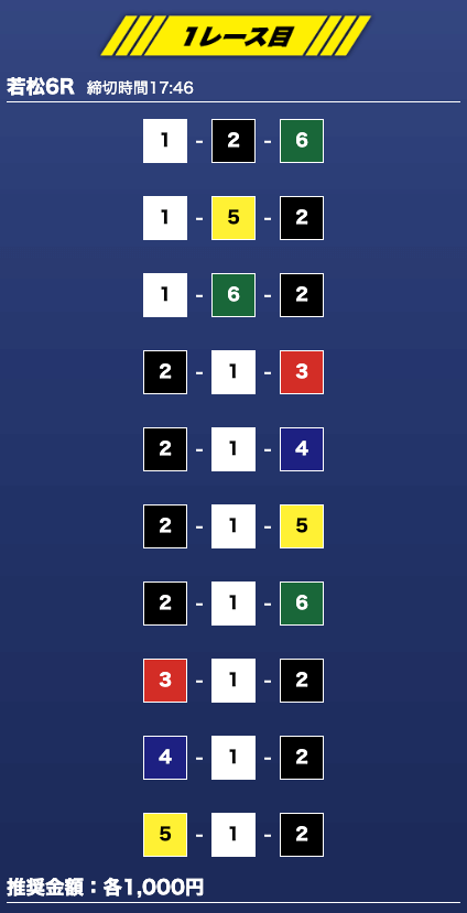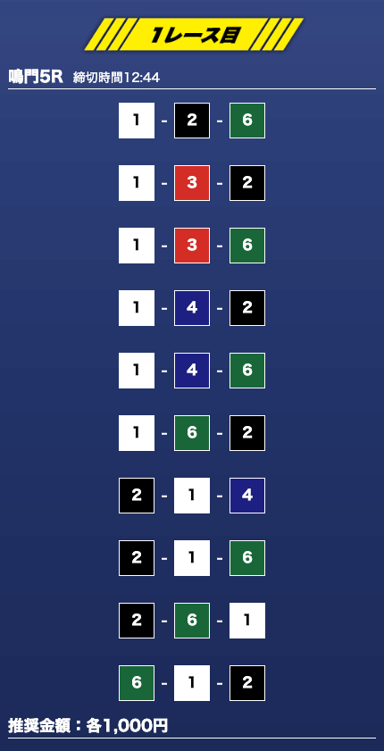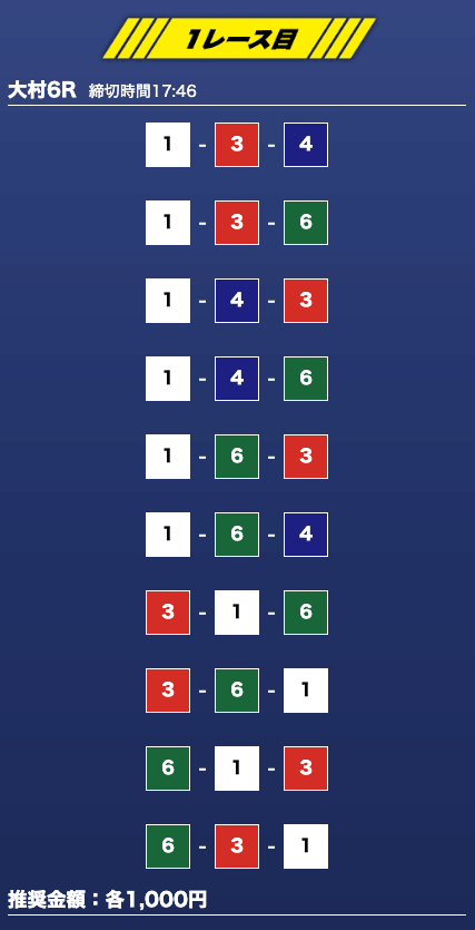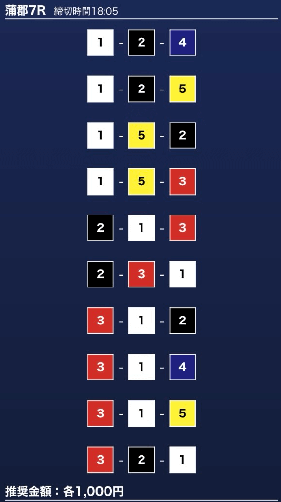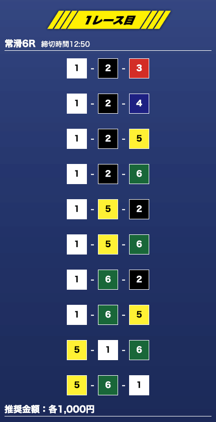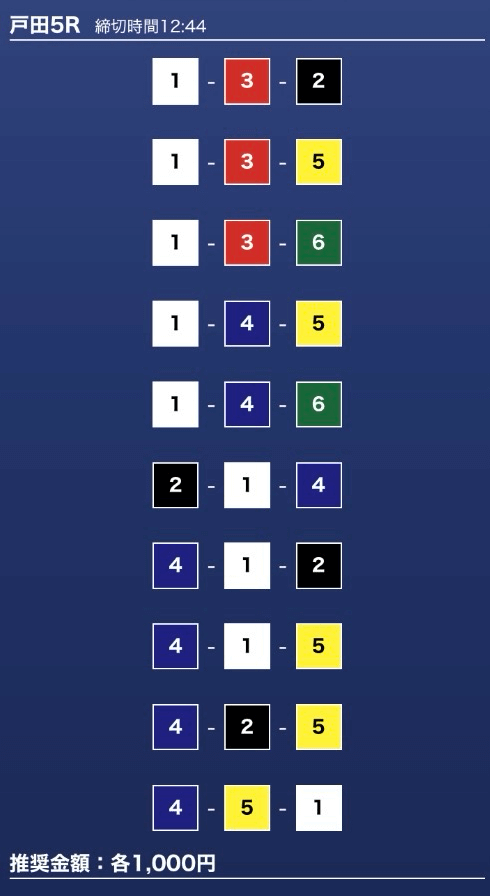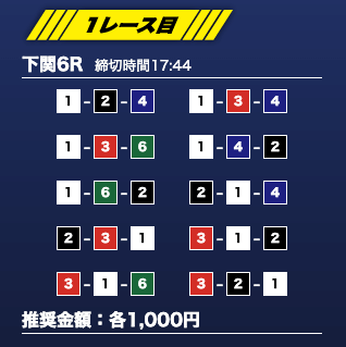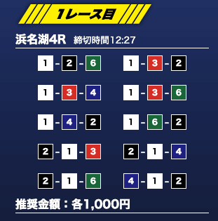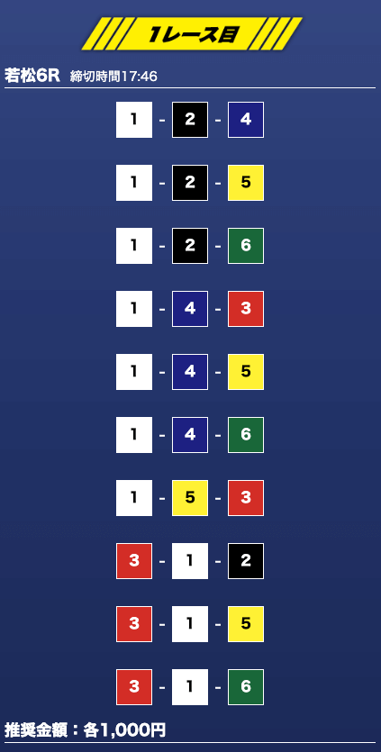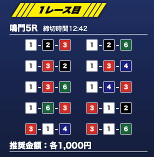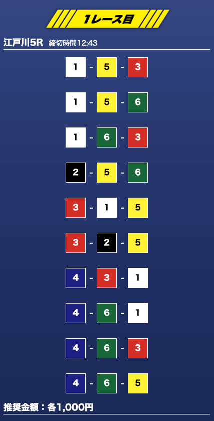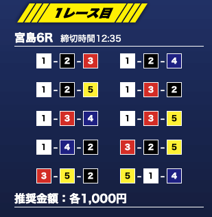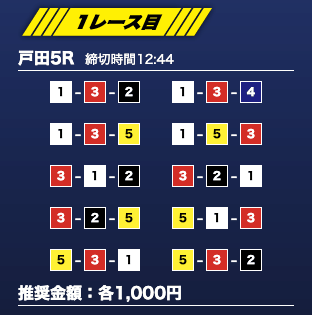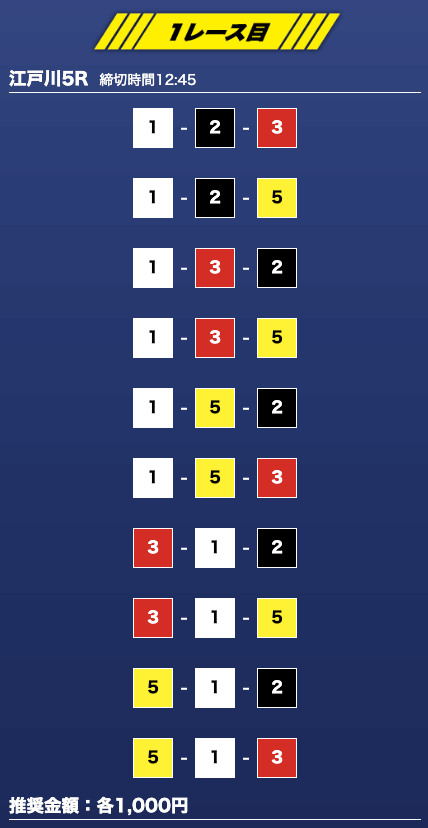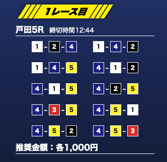 - 推奨舟券代:1万円(1点1,000円)