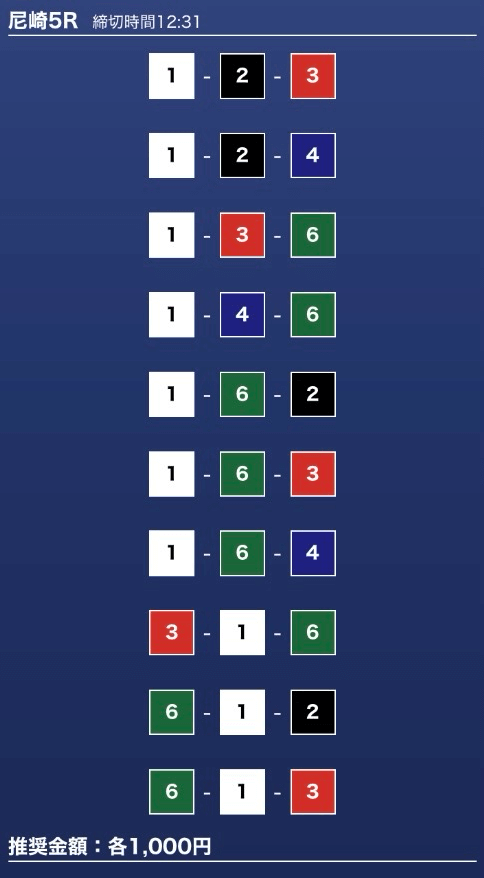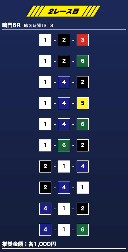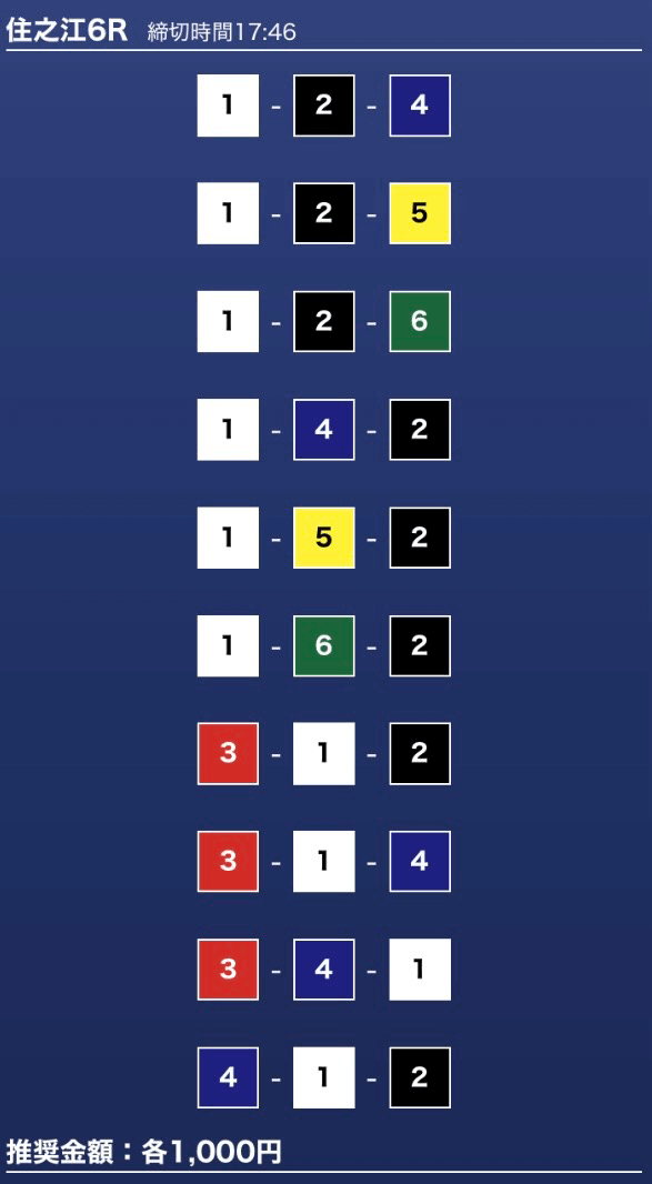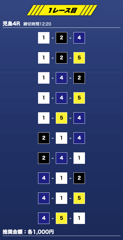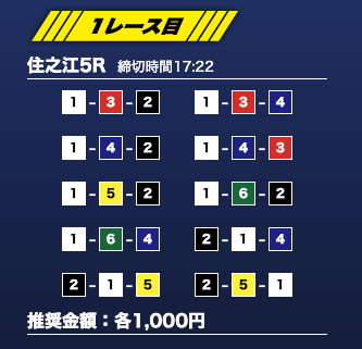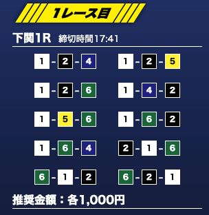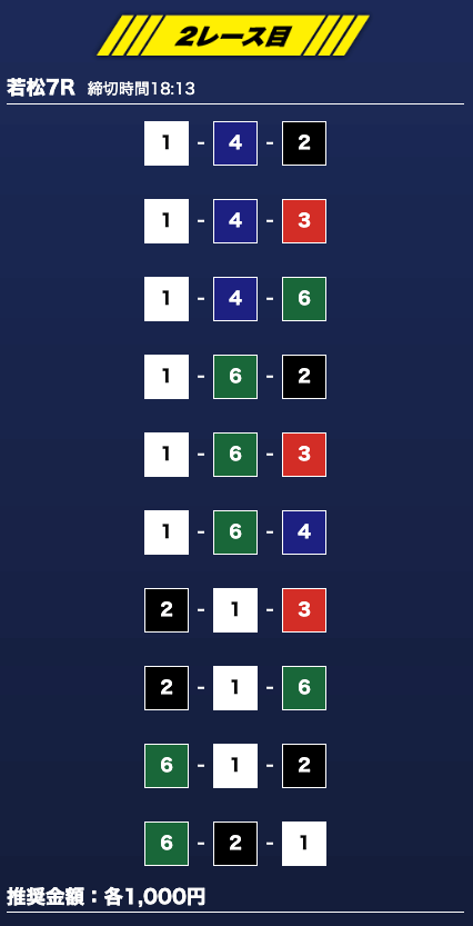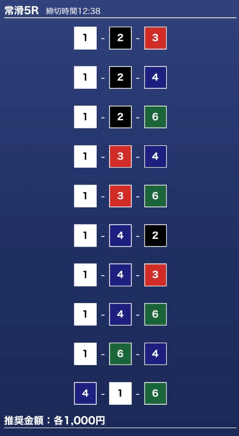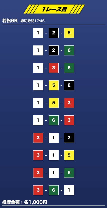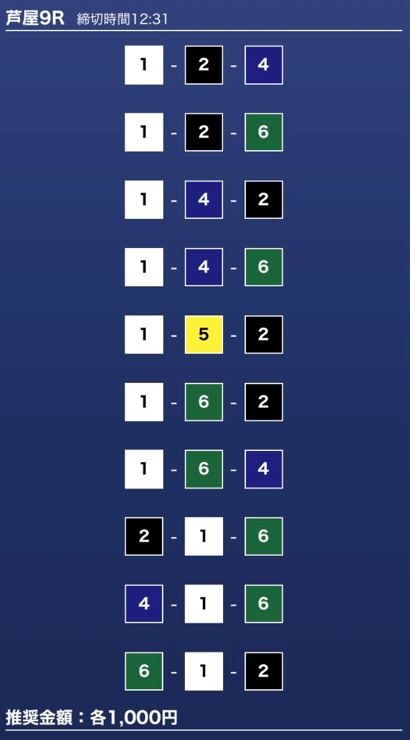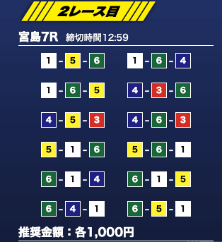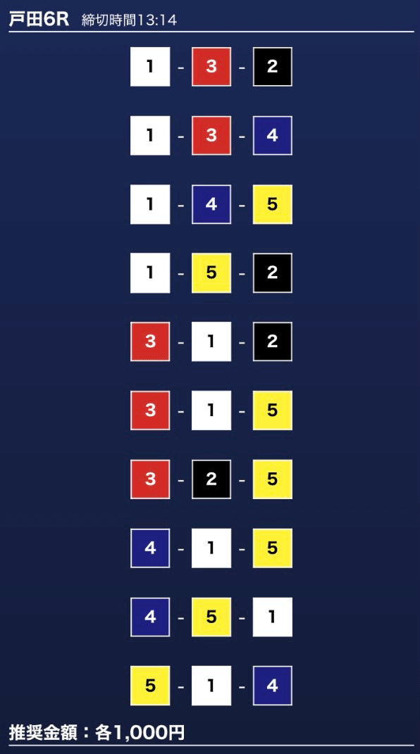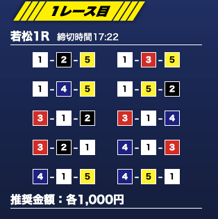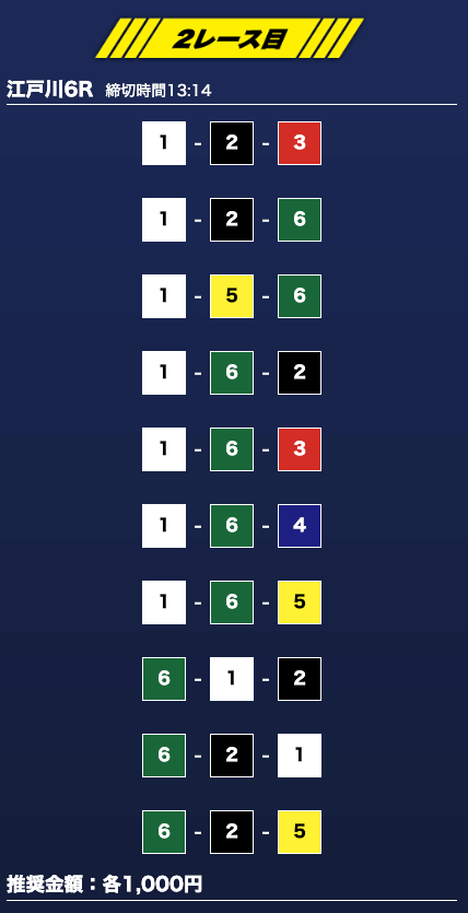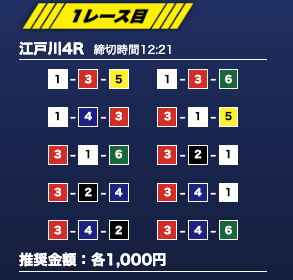 - 推奨舟券代:1万円(1点1,000円)
