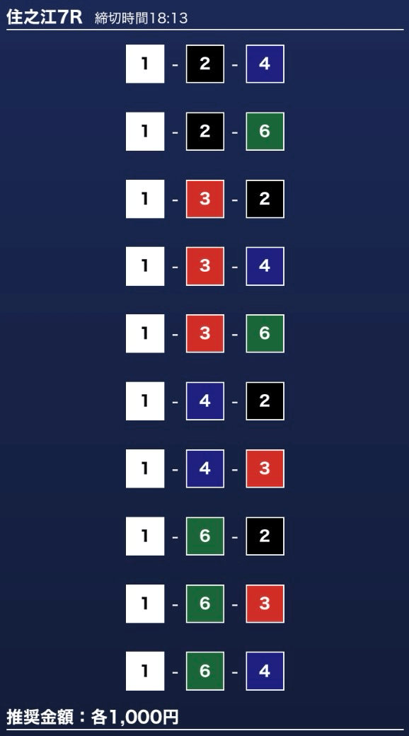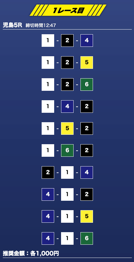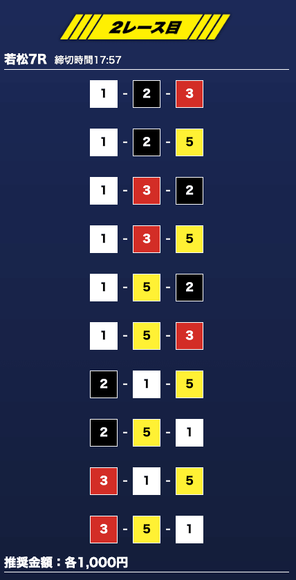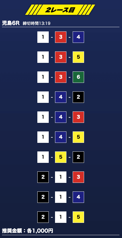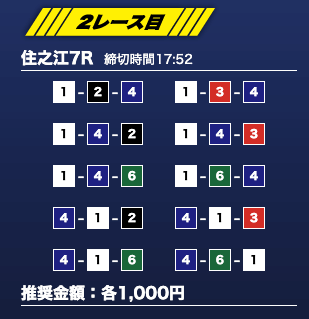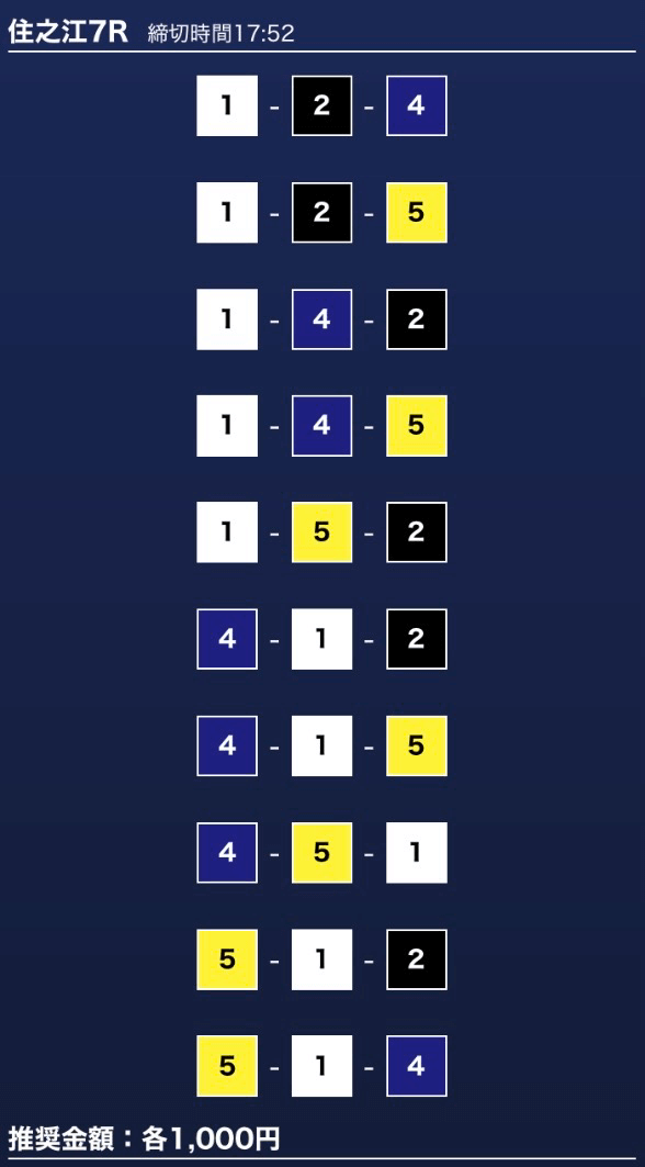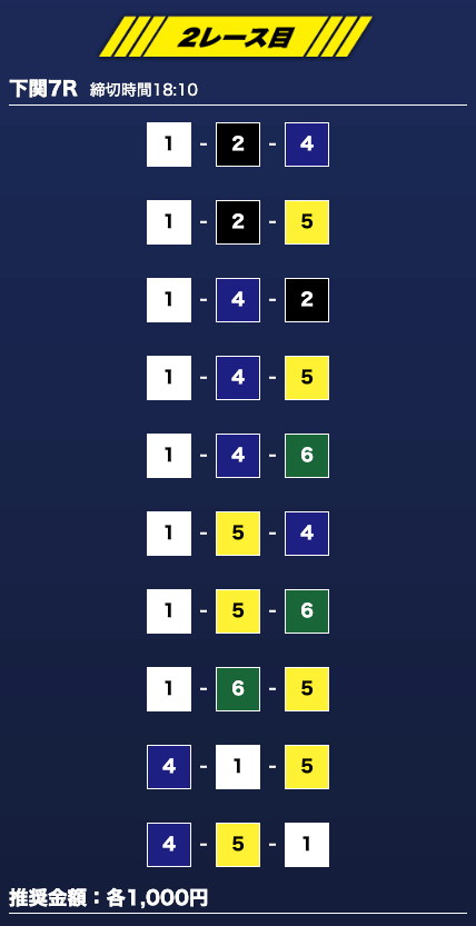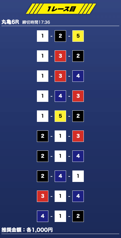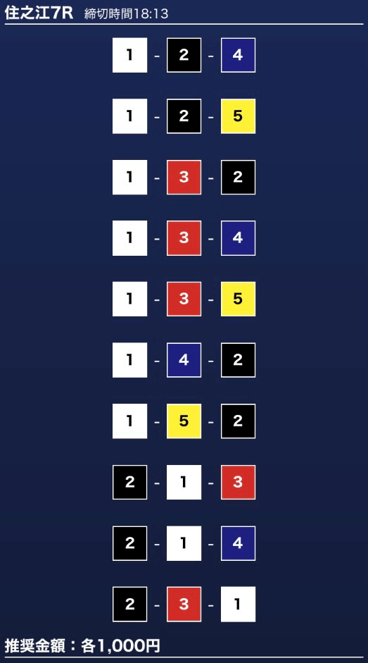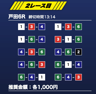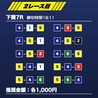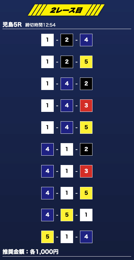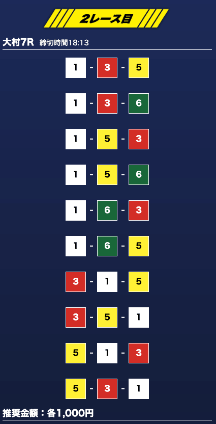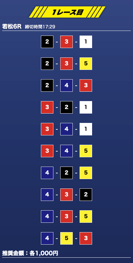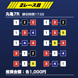 - 推奨舟券代:1万円(1点1,000円)