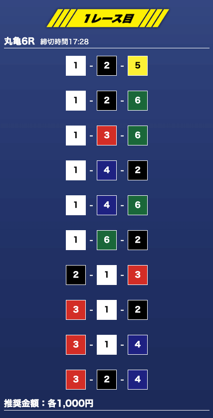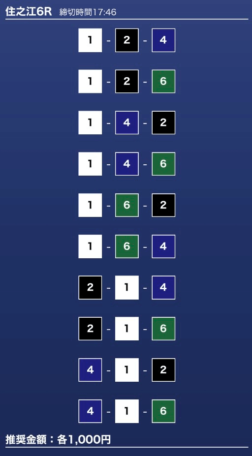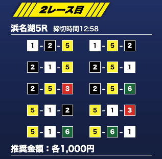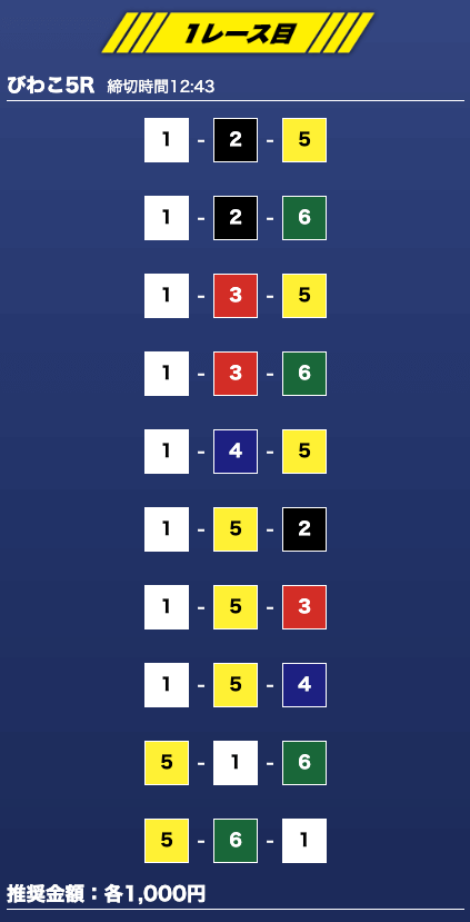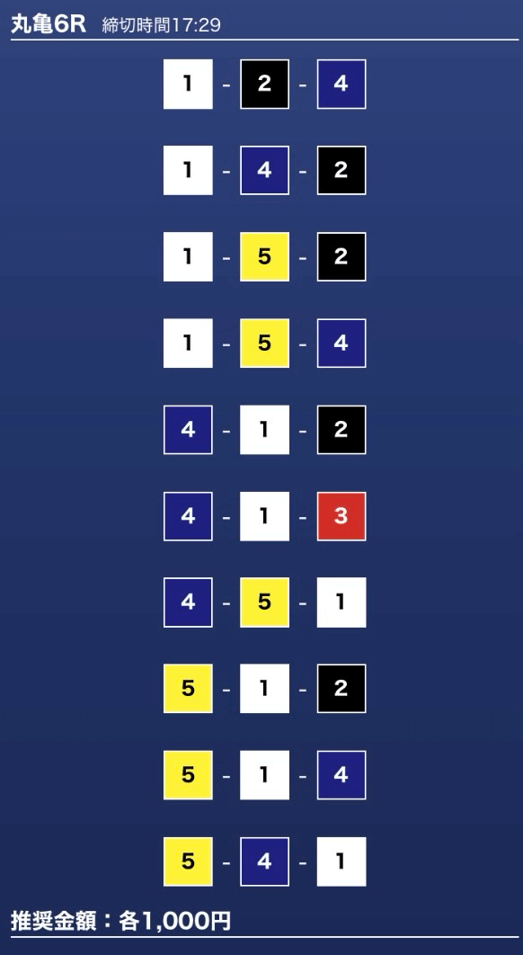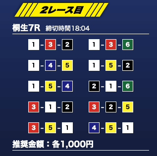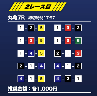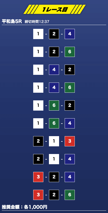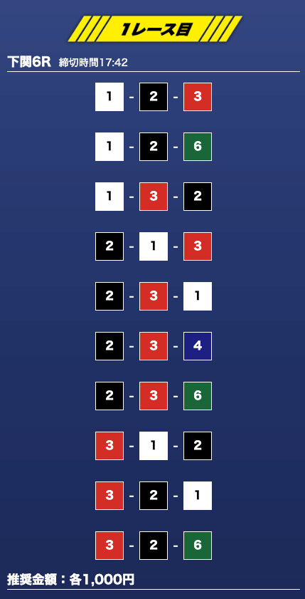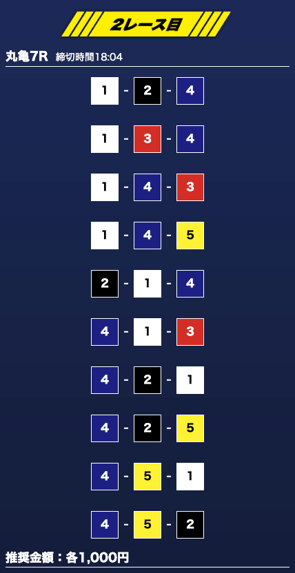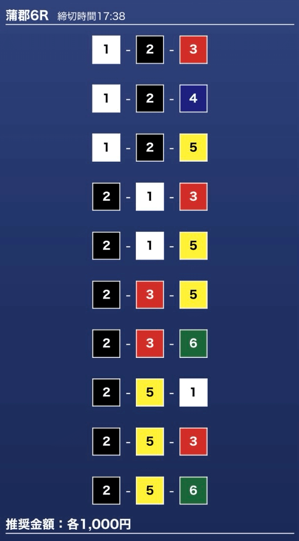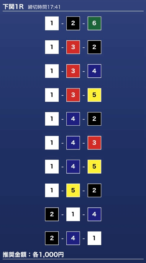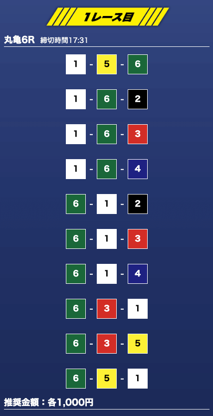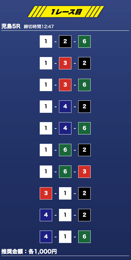 - 推奨舟券代:1万円(1点1,000円)