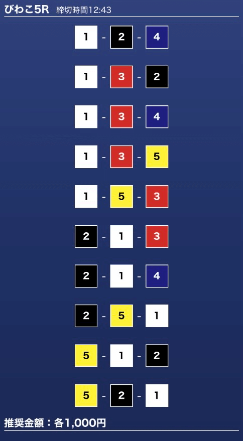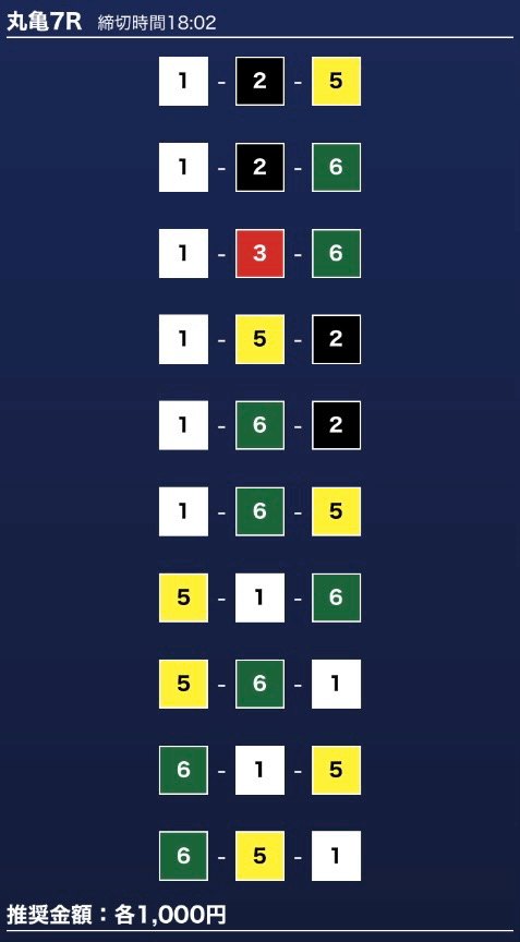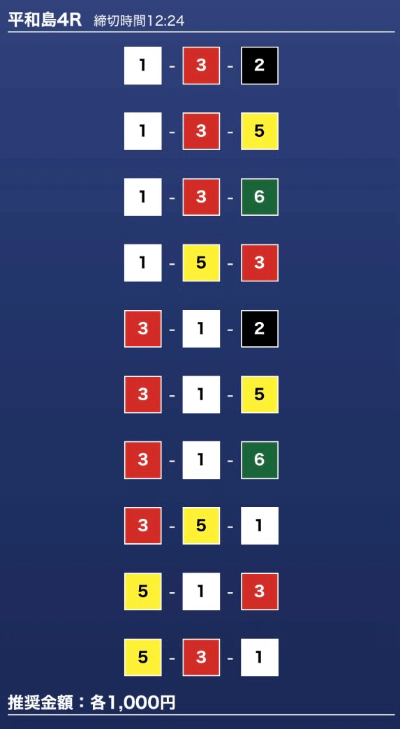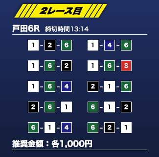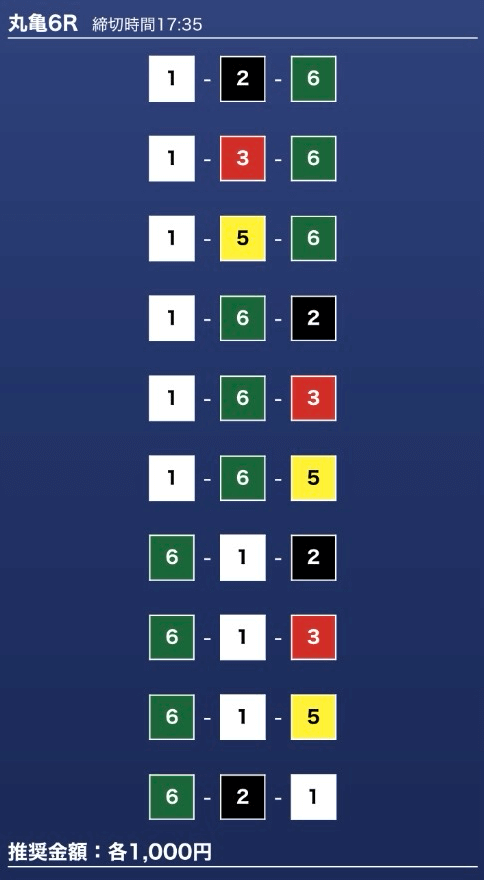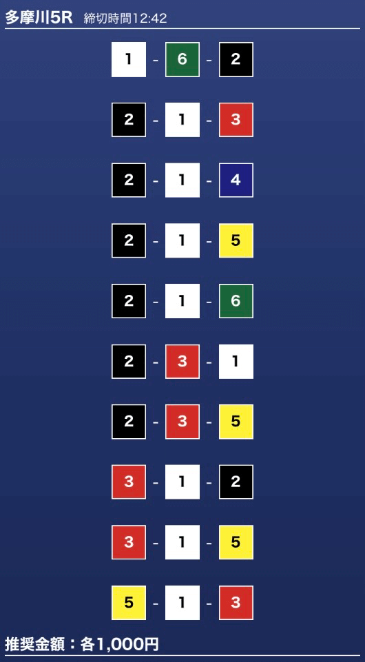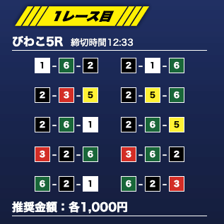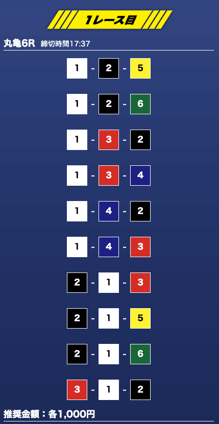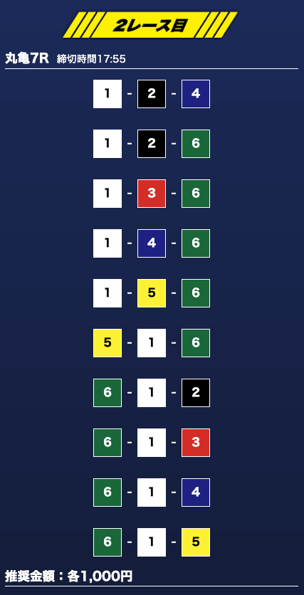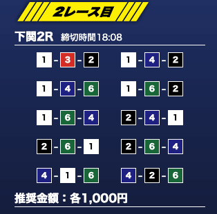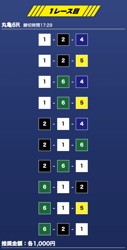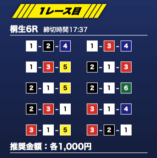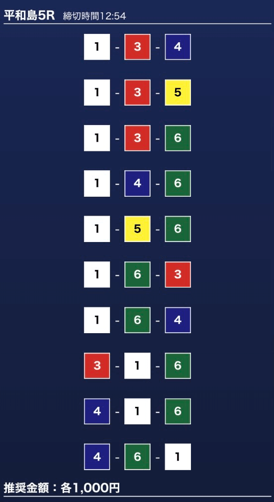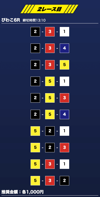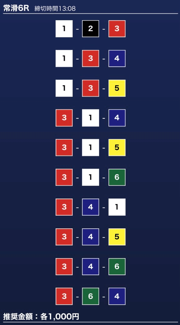 - 推奨舟券代:1万円(1点1,000円)