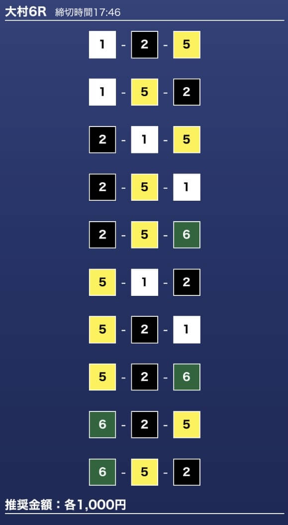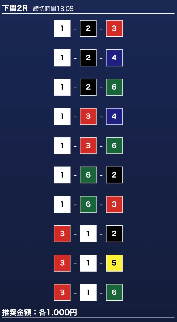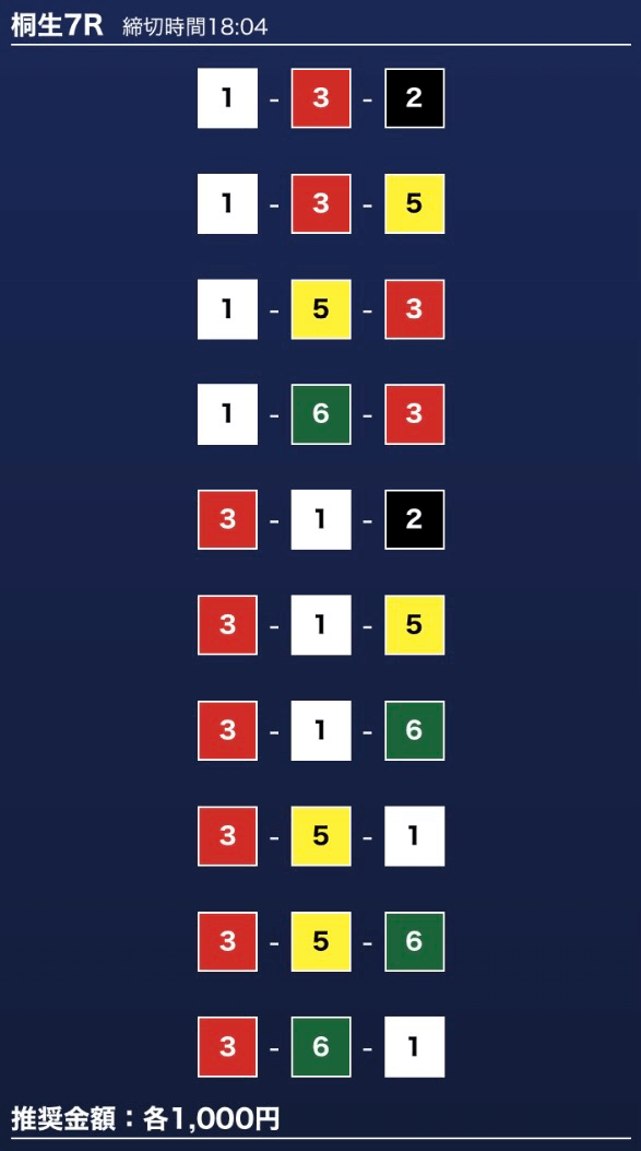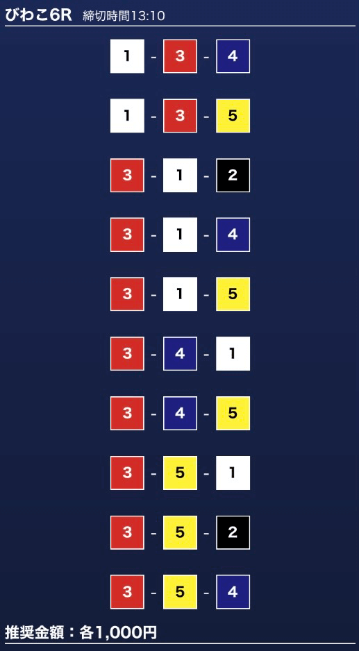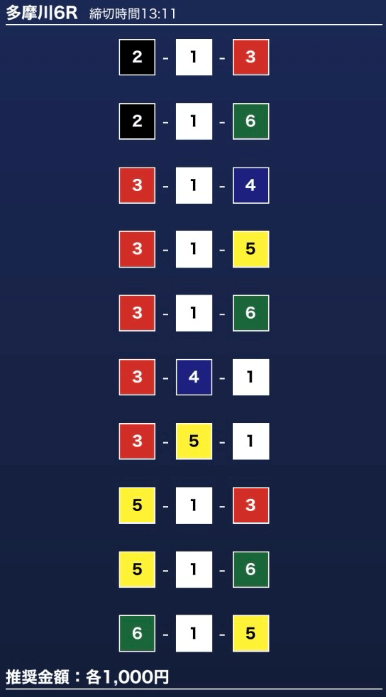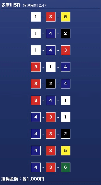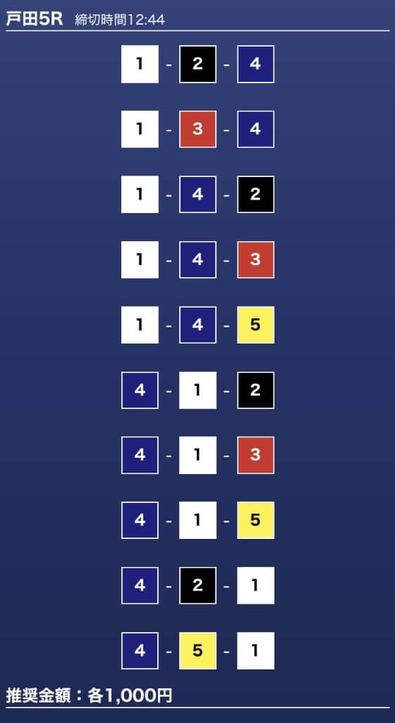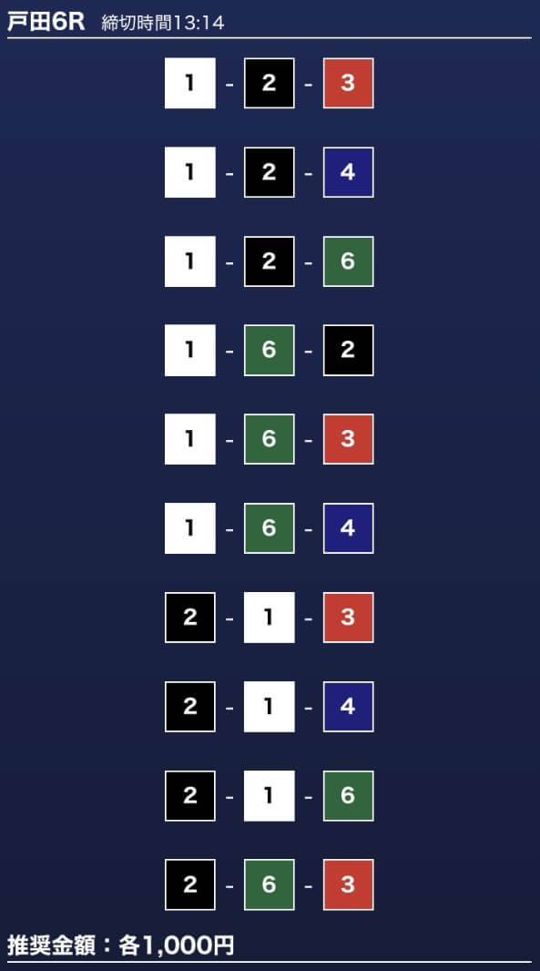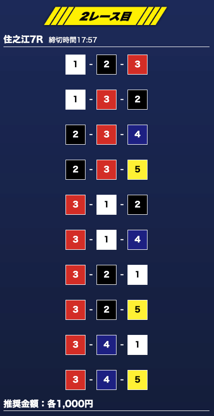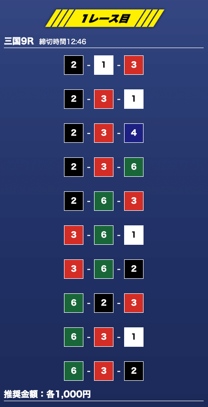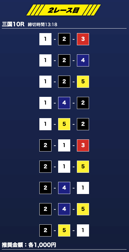 - 券種:3連単10点
