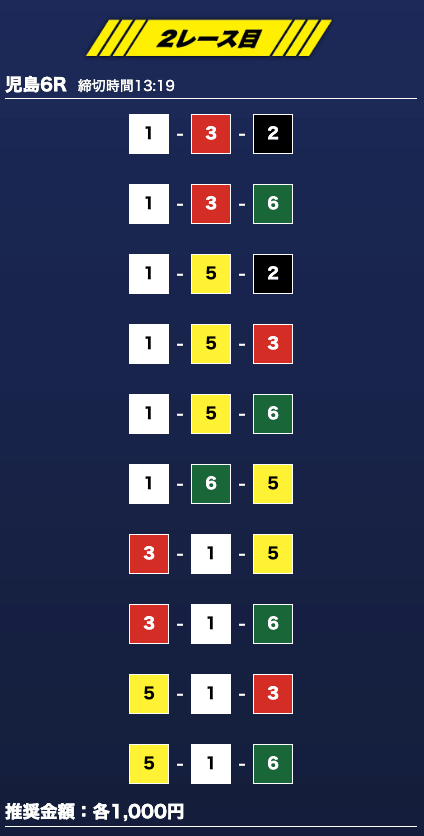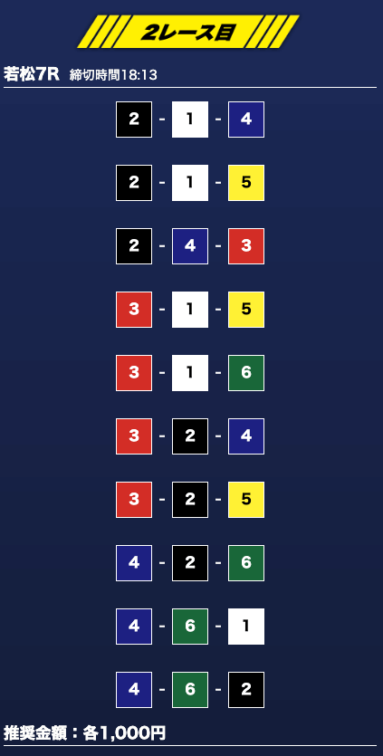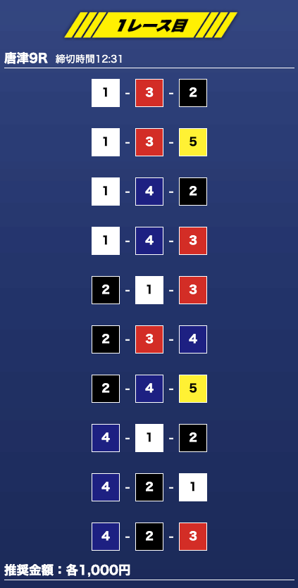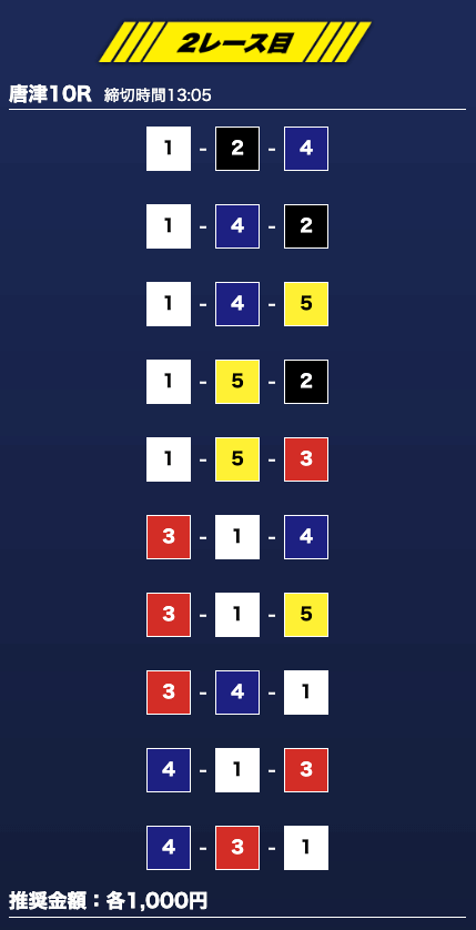 - 買い目点数が多くてコスパは△(無料予想)
