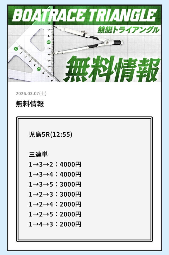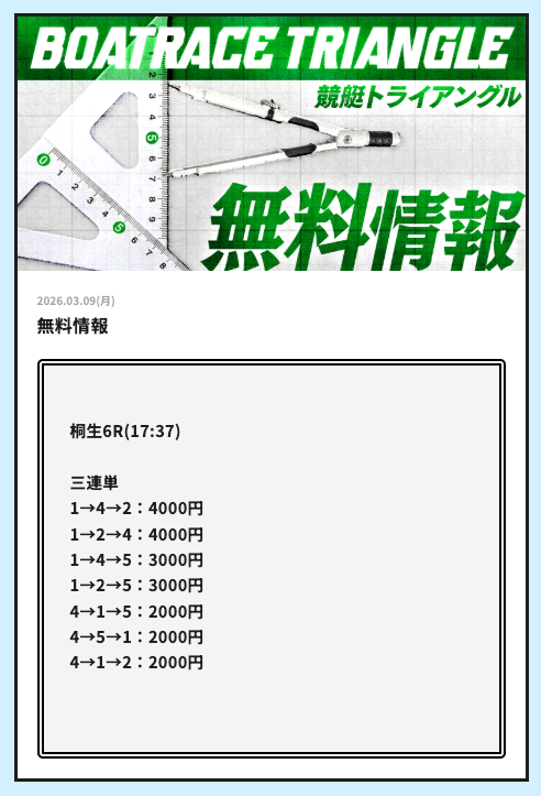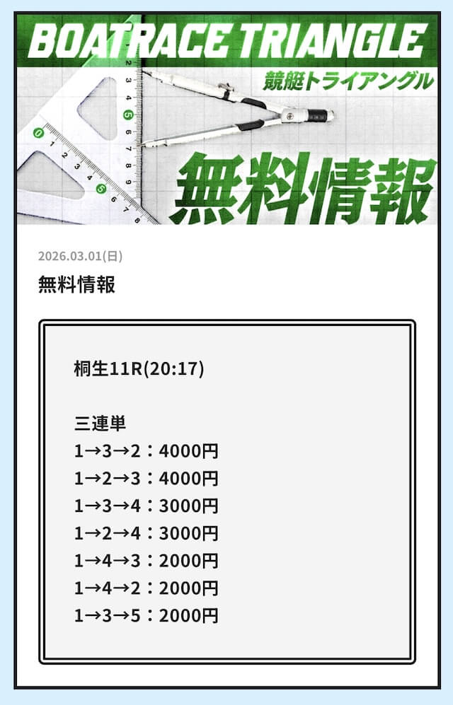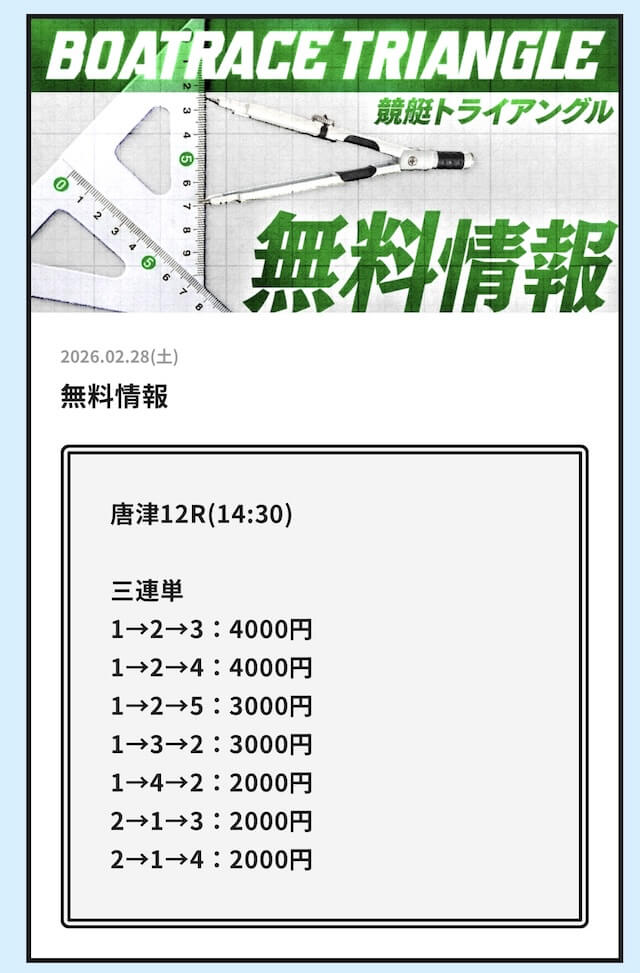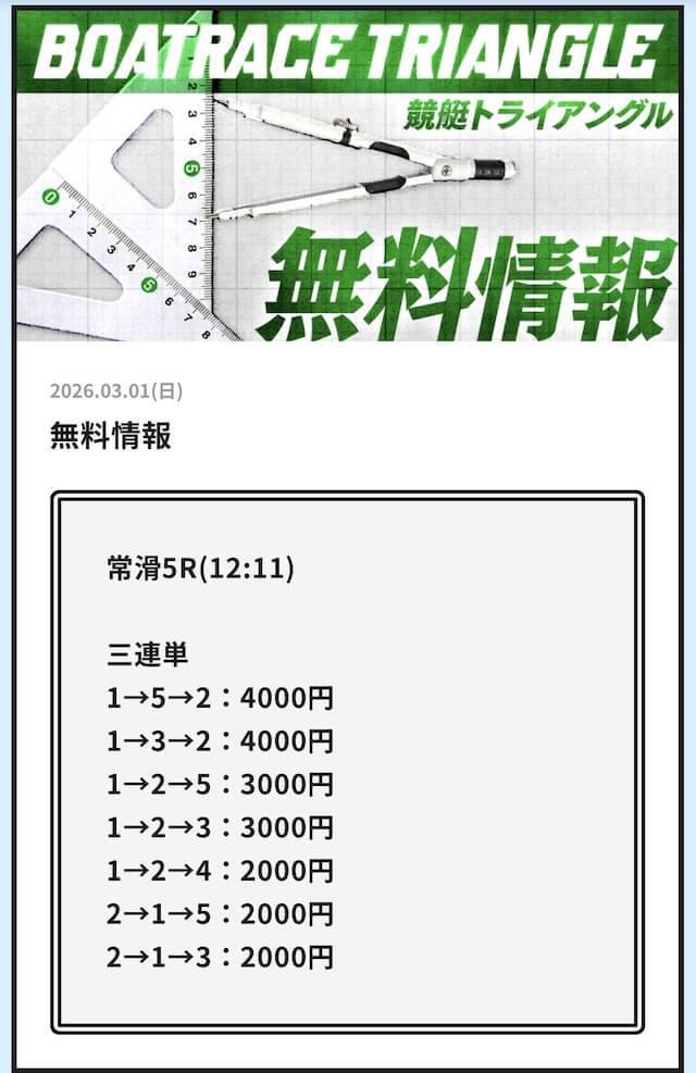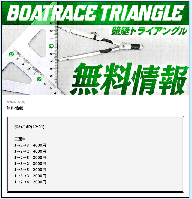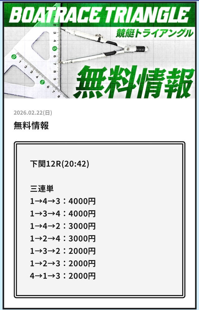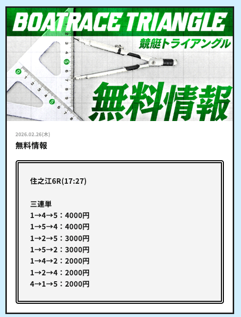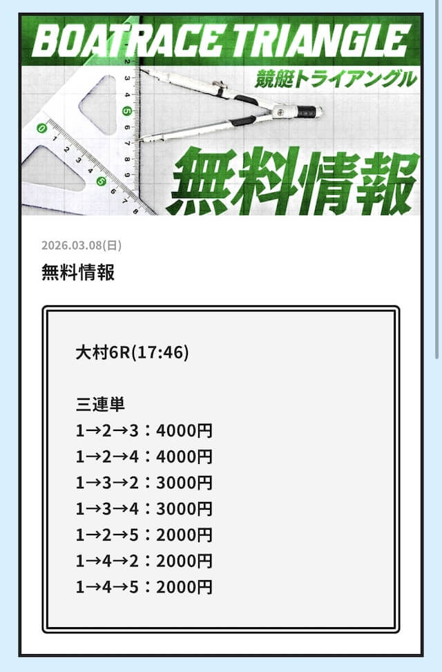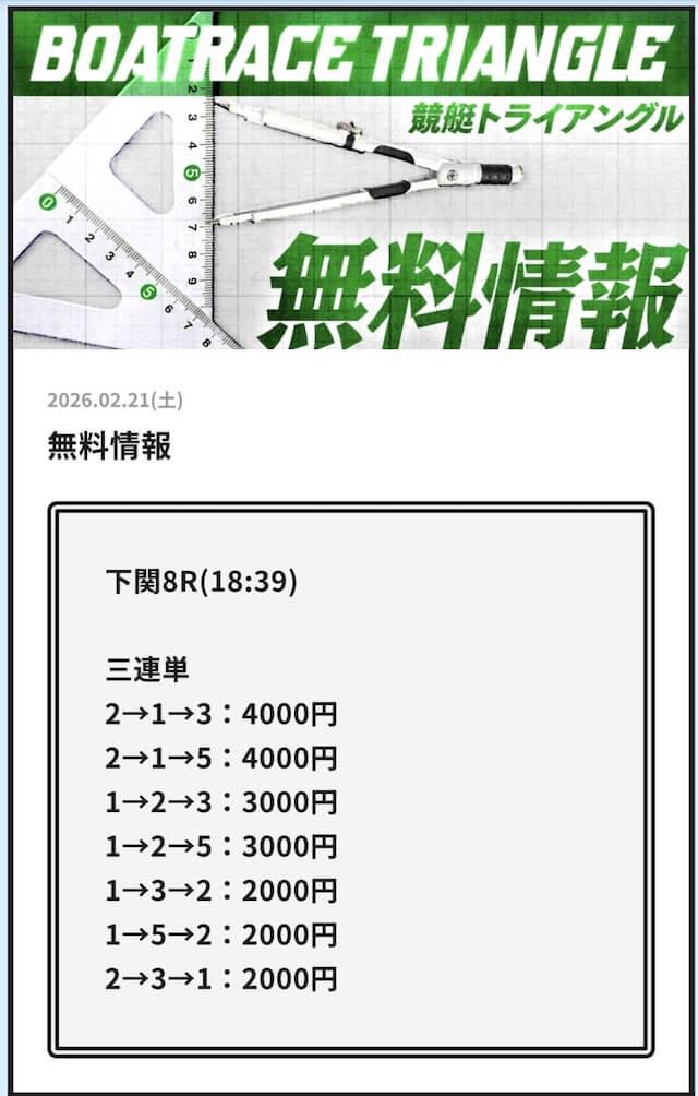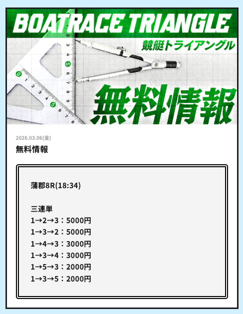 実際に公開される予想全てに参加して、競艇トライアングルの実力を明らかにしようと思います。
