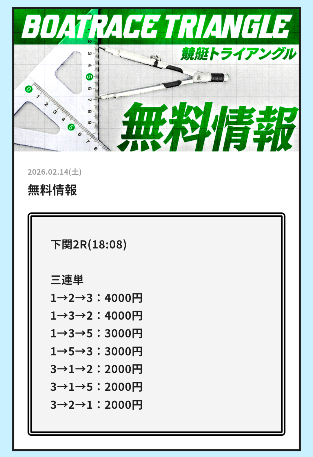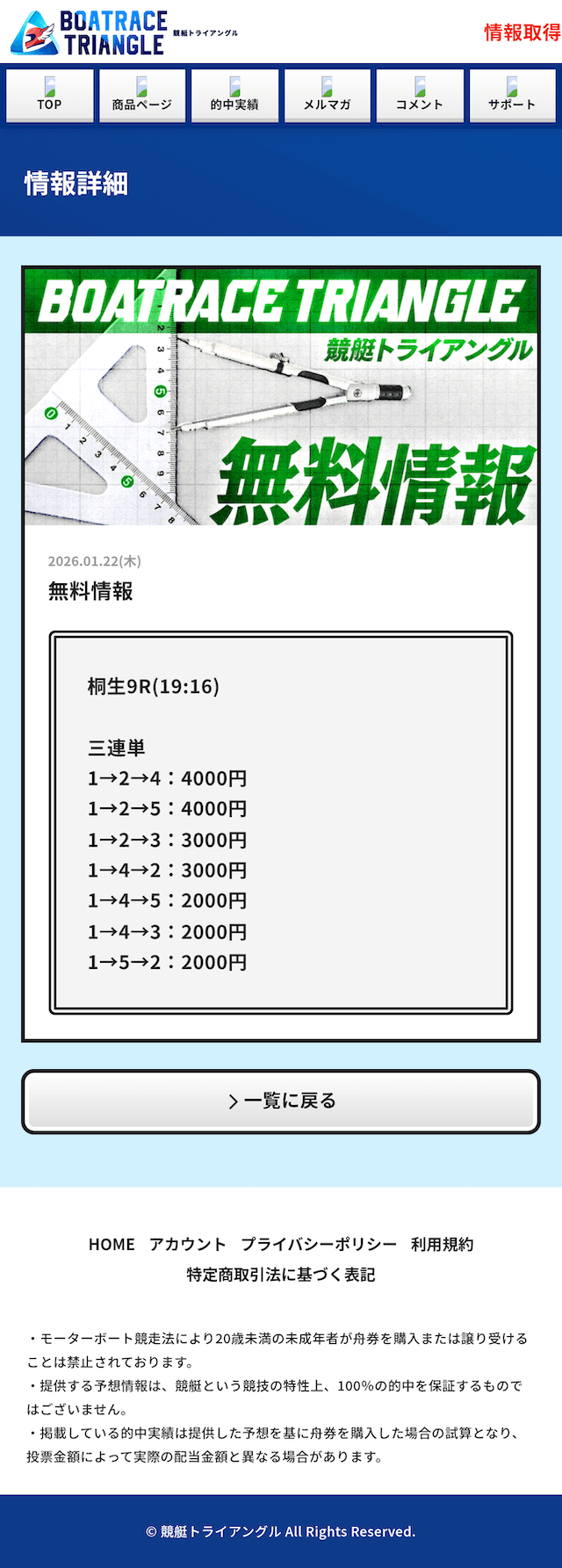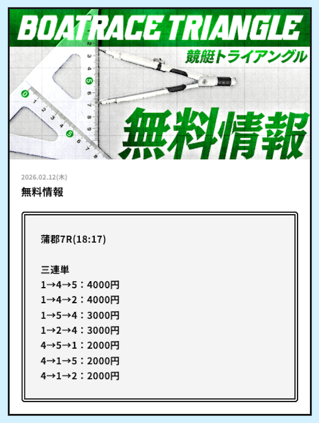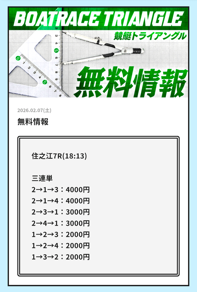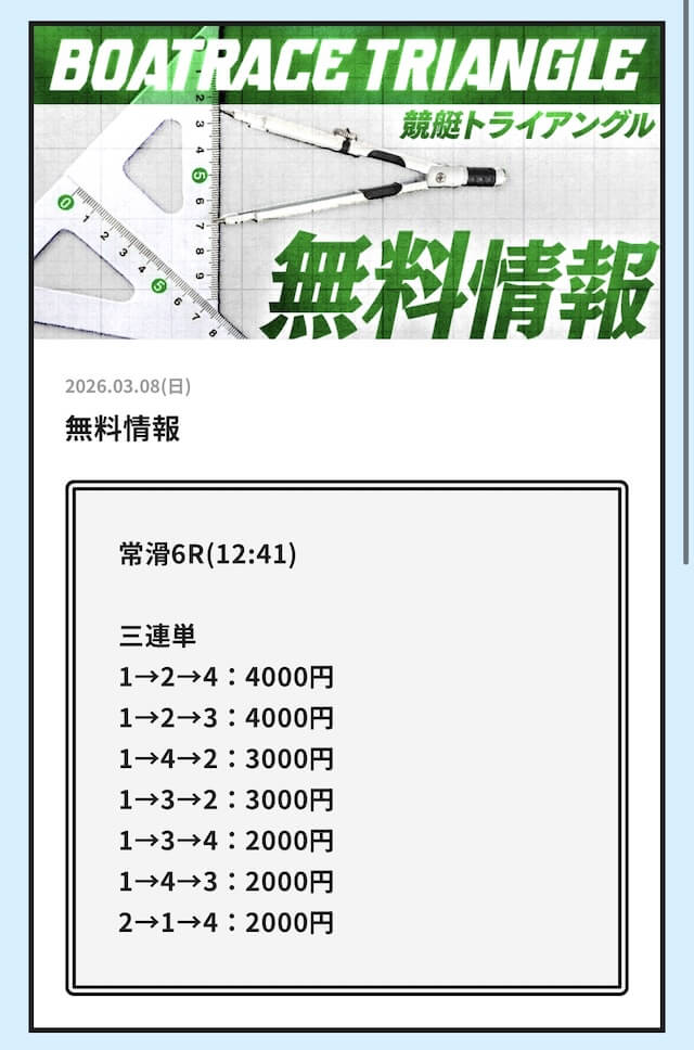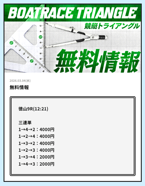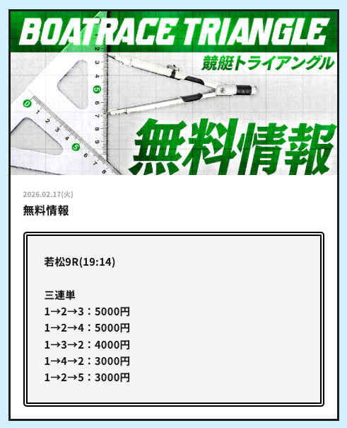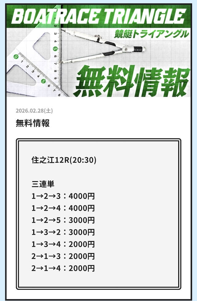 実際に公開される予想全てに参加して、競艇トライアングルの実力を明らかにしようと思います。