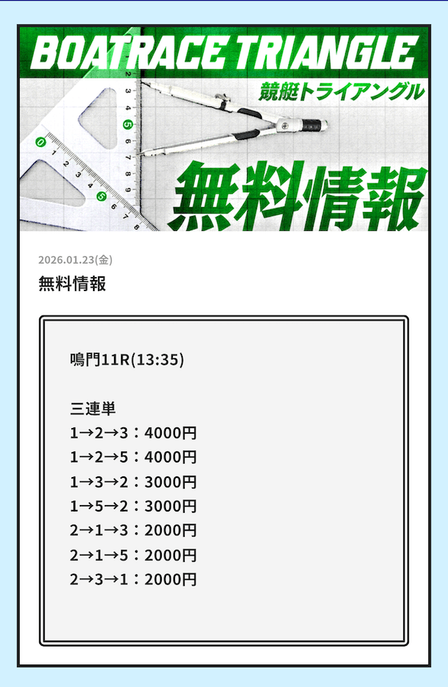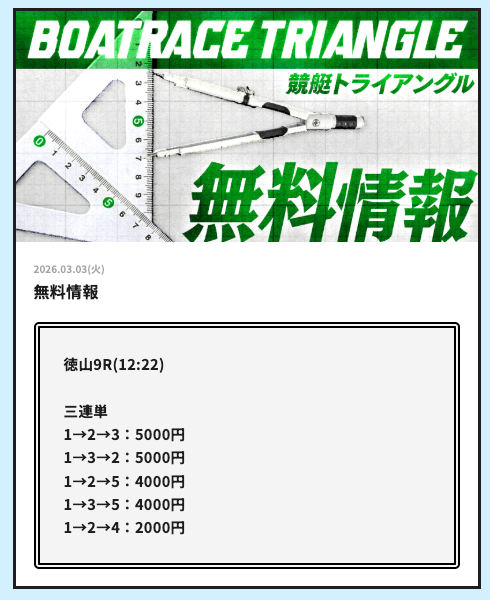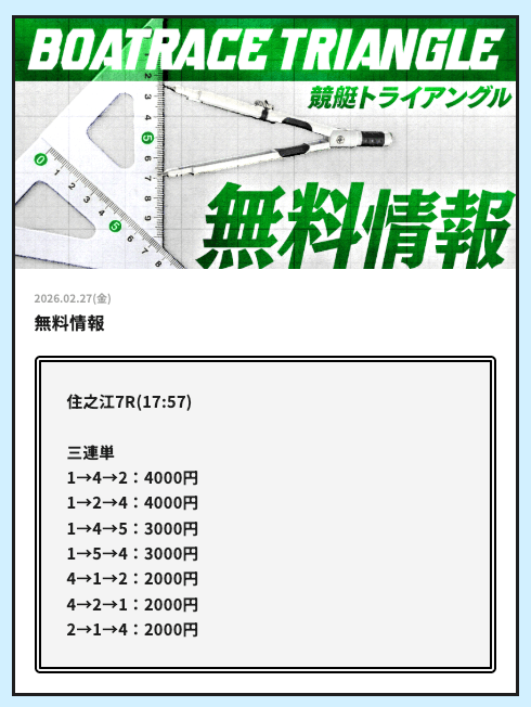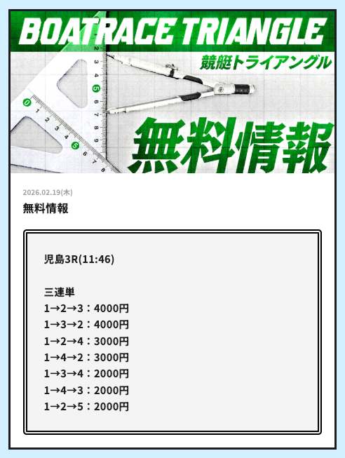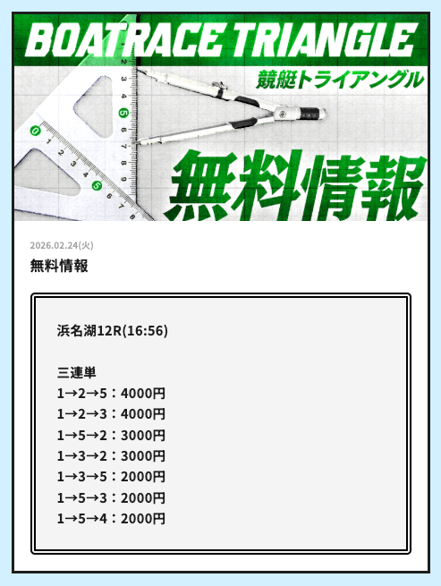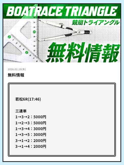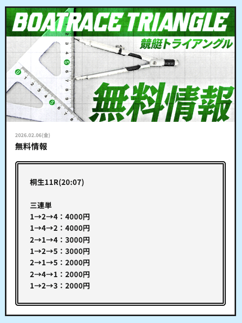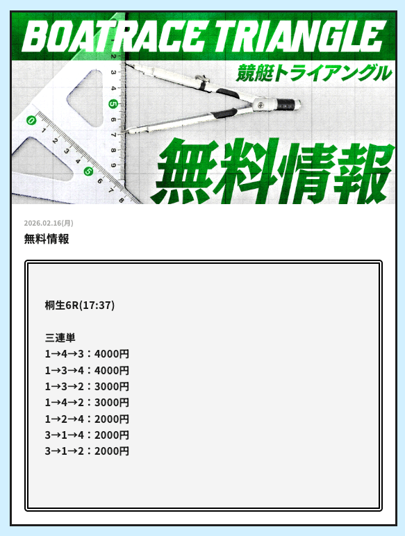 今日こそ競艇トライアングルの無料予想で稼ぎたいです。