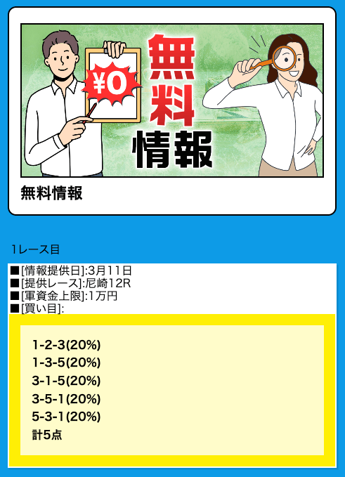 4日連続的中です!しかも無料予想で!これが1日2レース公開されるのは有難すぎる。できれば1日10レースくらい公開してほしいレベル。笑 今後も活用させていただきまーす!