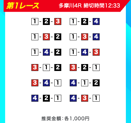 「①-②-③④」「②-①-③」といった人気どころをあえて切り、センター勢を軸に選択したのは「一波乱ある展開」を完全に読み切っていた証拠。