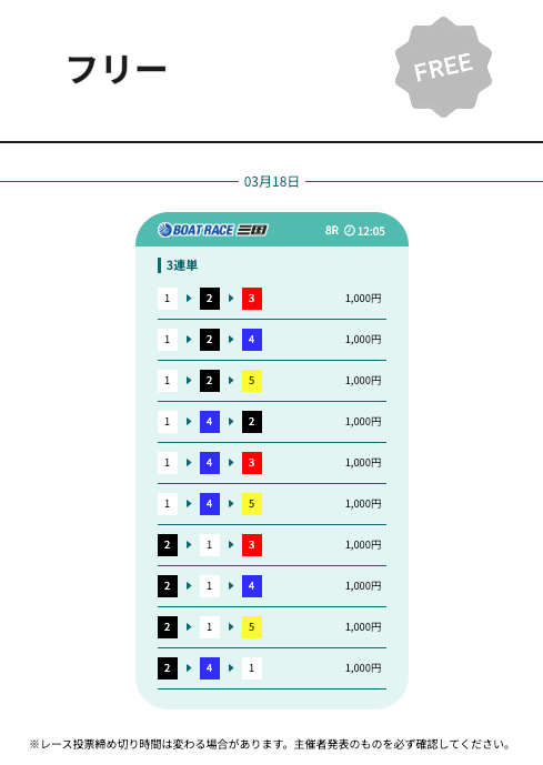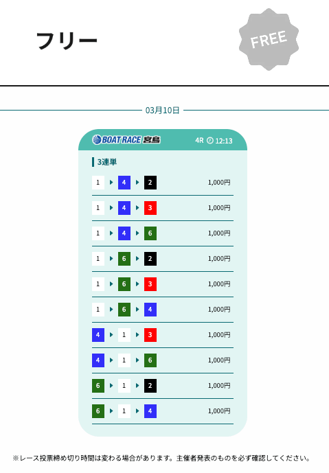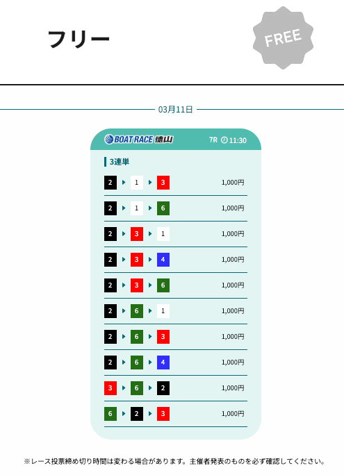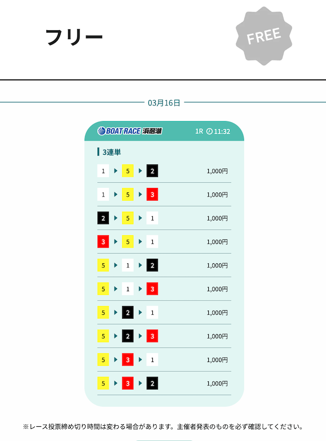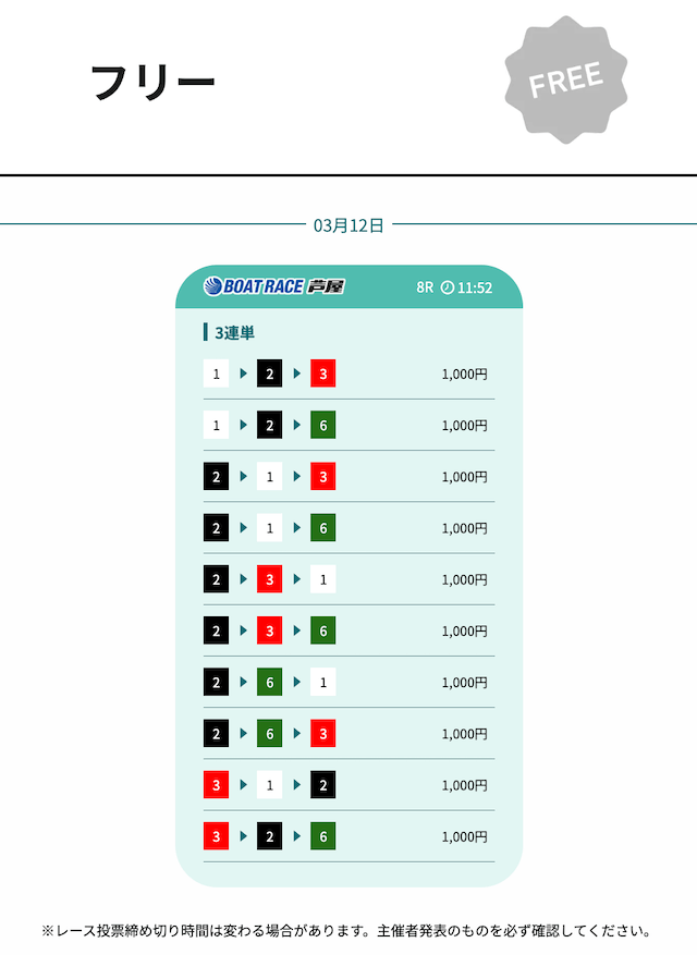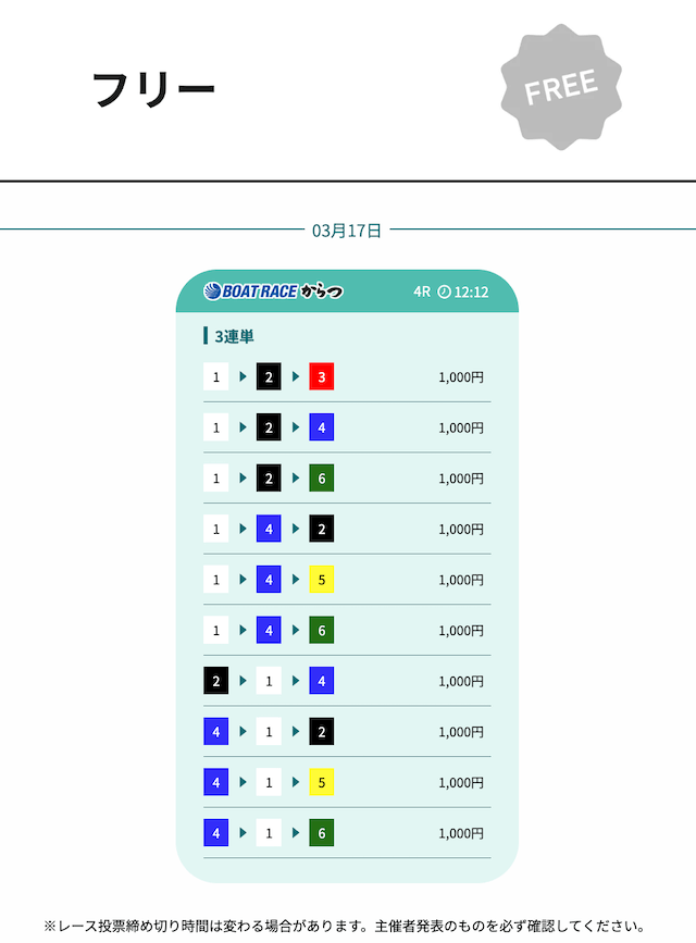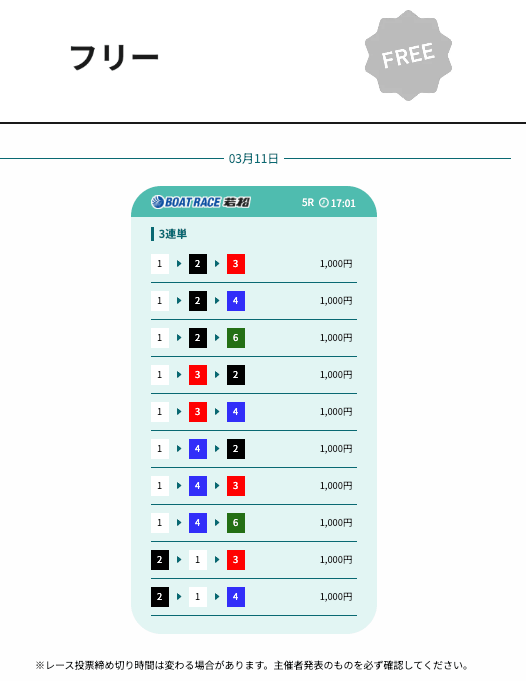 無料予想が公開されるのは、毎日12時・15時の2回。