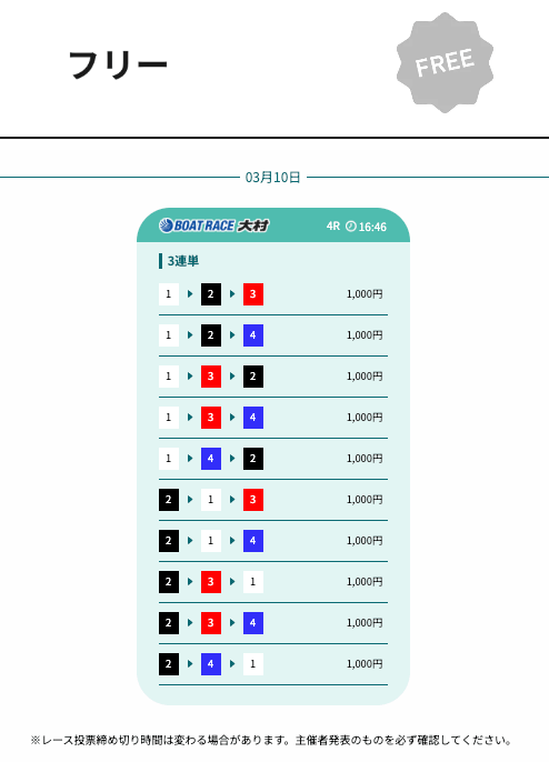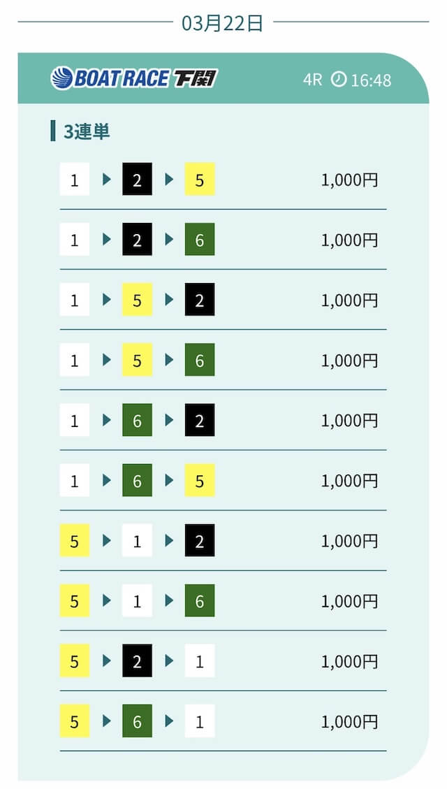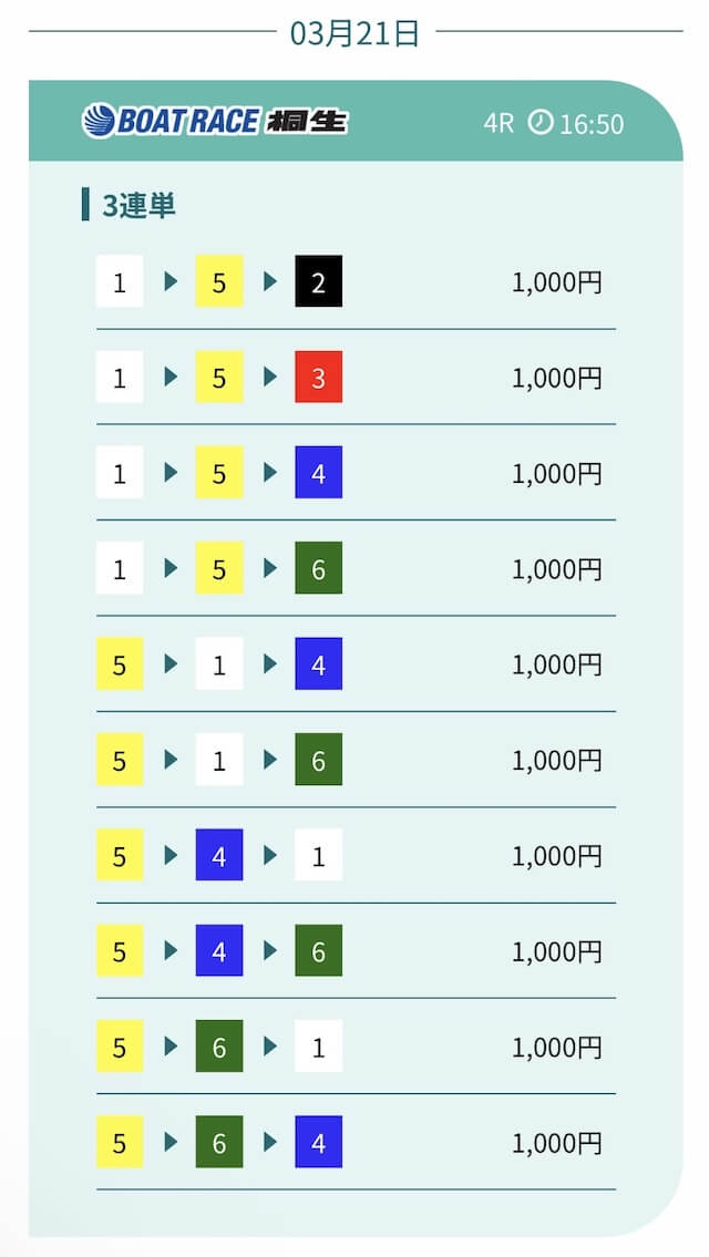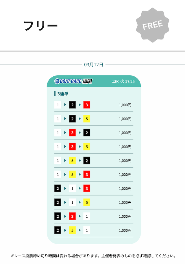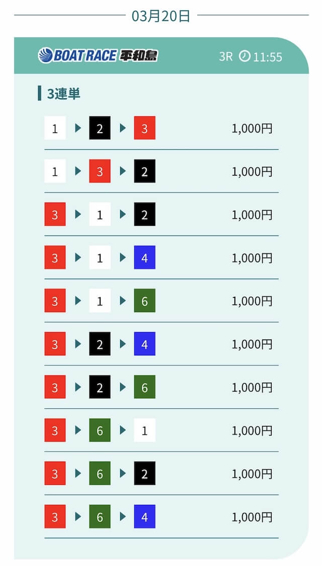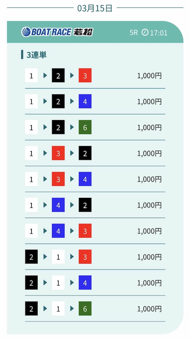 - 検証基準②:推奨金額がない場合は1点1,000円で3連単を購入