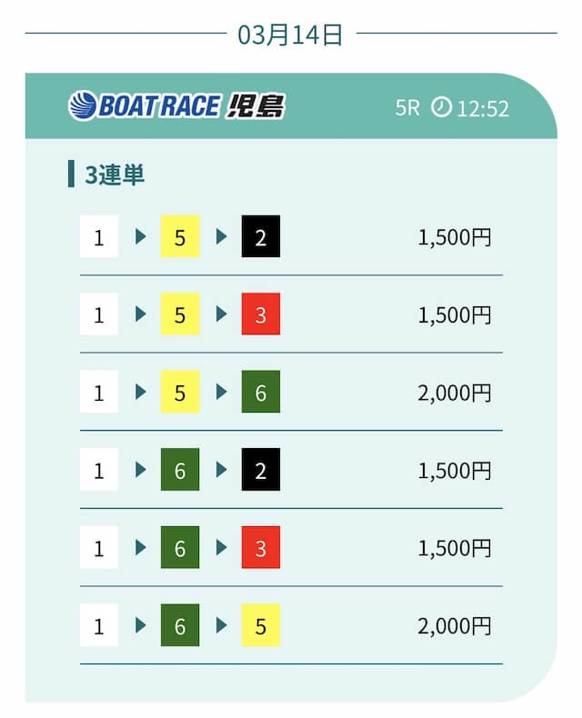 | ①-②-⑥ | 20.9倍 | 800円 |